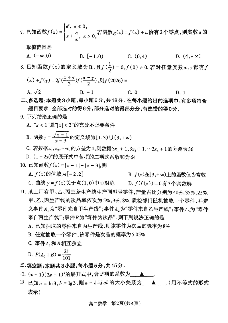 山西吕梁2024-2025学年高二第二学期期末数学试题及答案 时间:2025-07-08 山西 高中数学 山西省吕梁市2024-2025学年高二第二学期期末调研数学考试已于近日开考,为方便考生考后及时查看考试情况,查漏补缺、弥补不足,本文整理了试题答案解析相关信息! 数学试题及答案解析