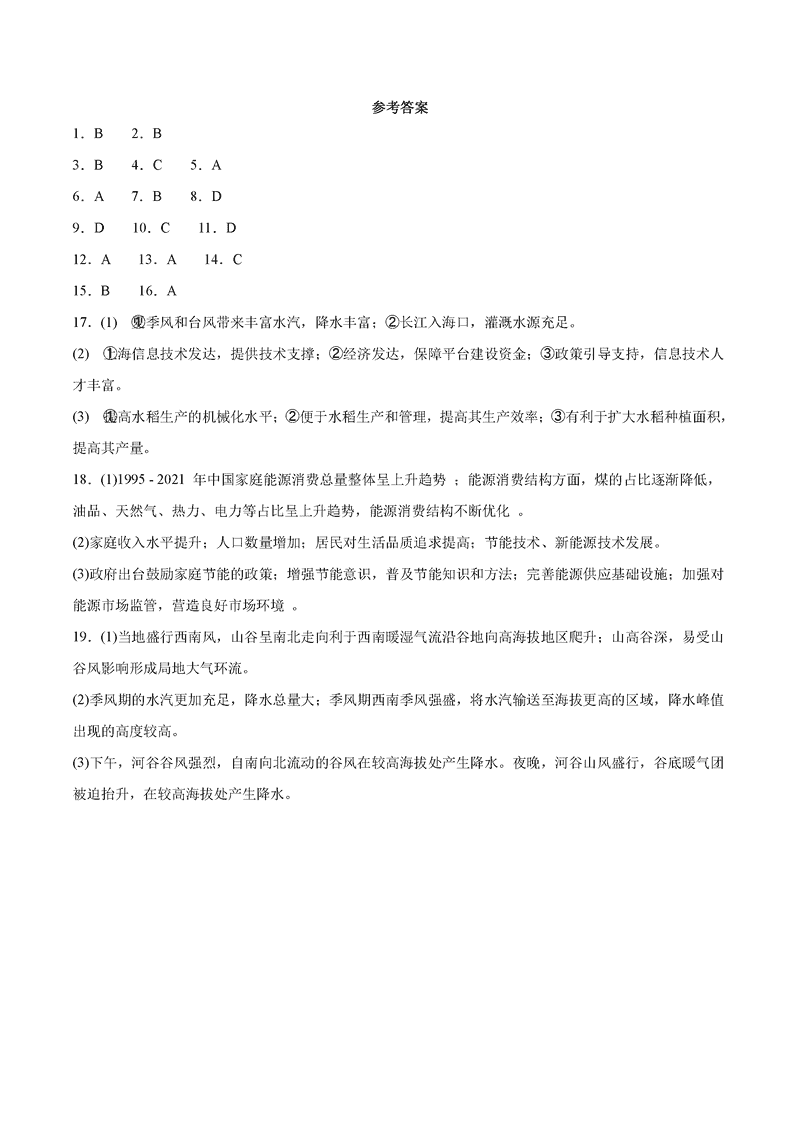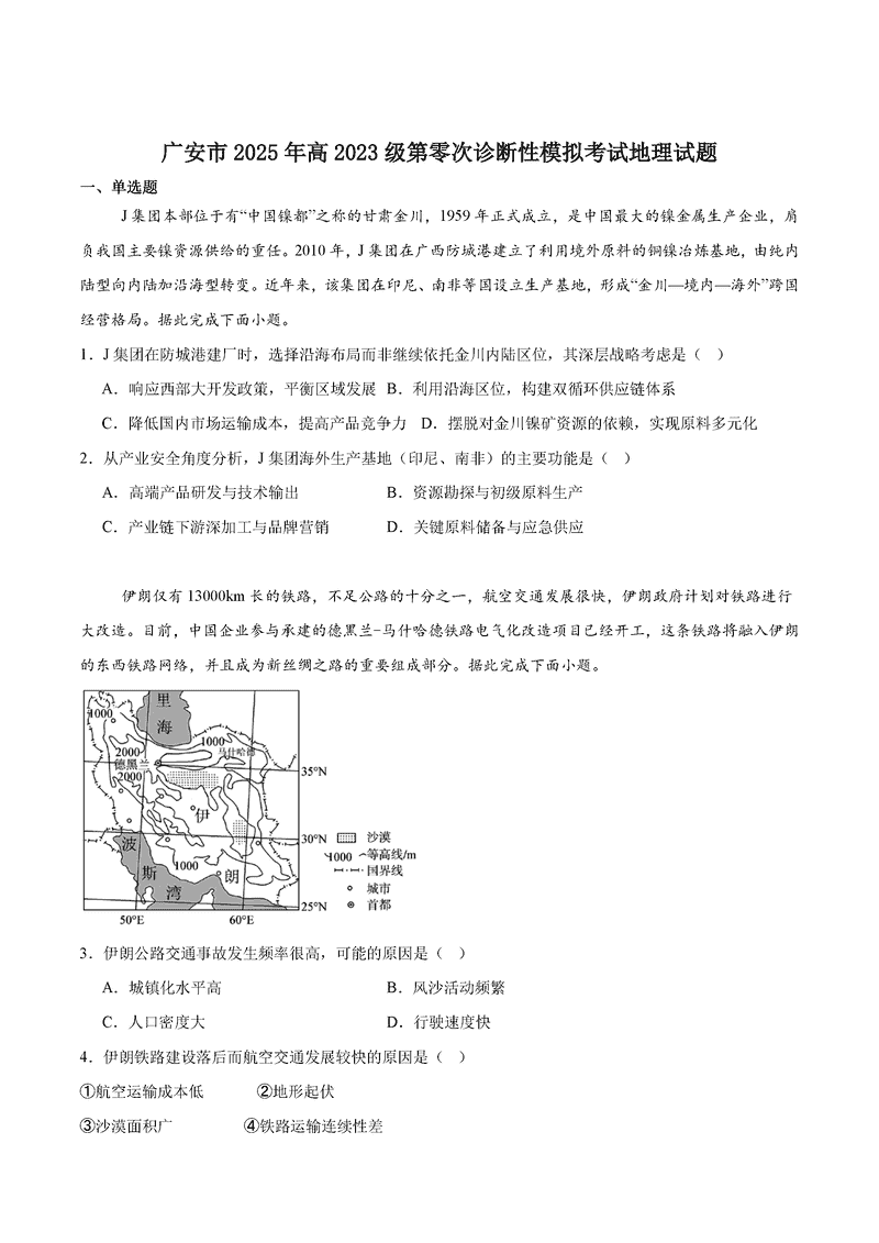 字节教育(广安、雅安、简阳市)2025年2023级零诊模拟地理试题及答案