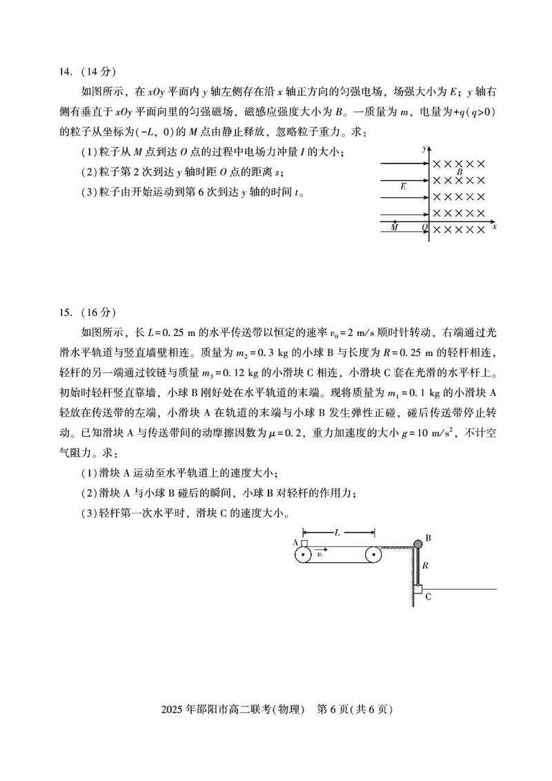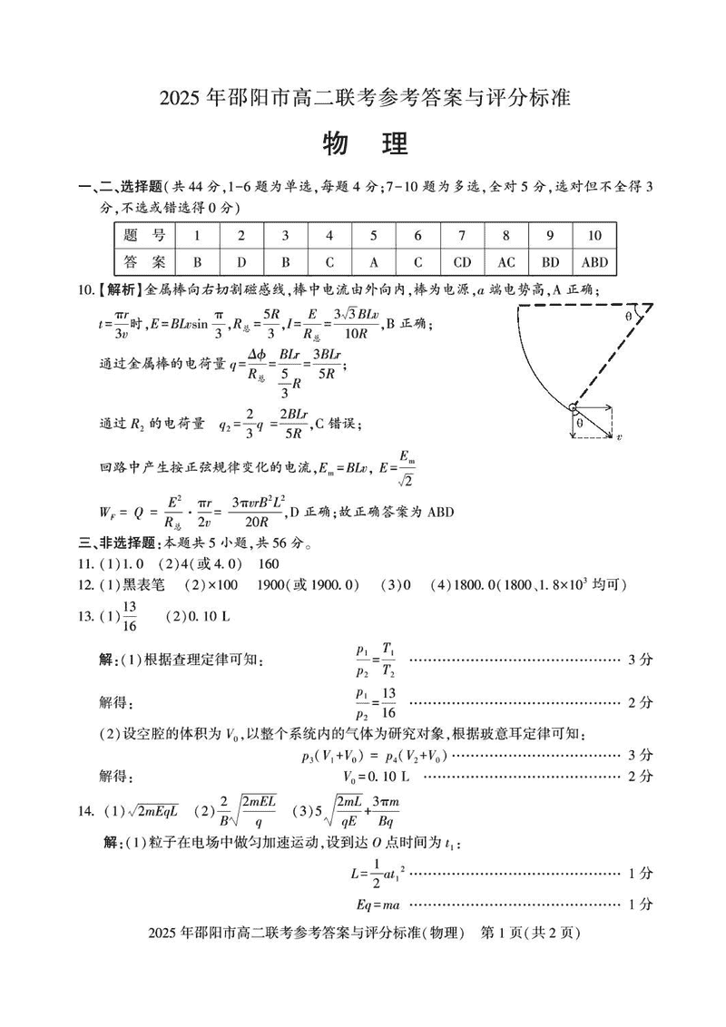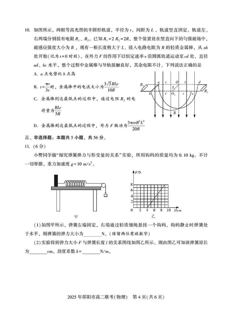 湖南邵阳2025年高二7月期末联考物理试题及答案 时间:2025-07-08 湖南 高中物理 湖南省邵阳市2025年高二下学期7月期末联考物理考试已于近日开考,为方便考生考后及时查看考试情况,查漏补缺、弥补不足,本文整理了试题答案解析相关信息! 物理试题及答案解析