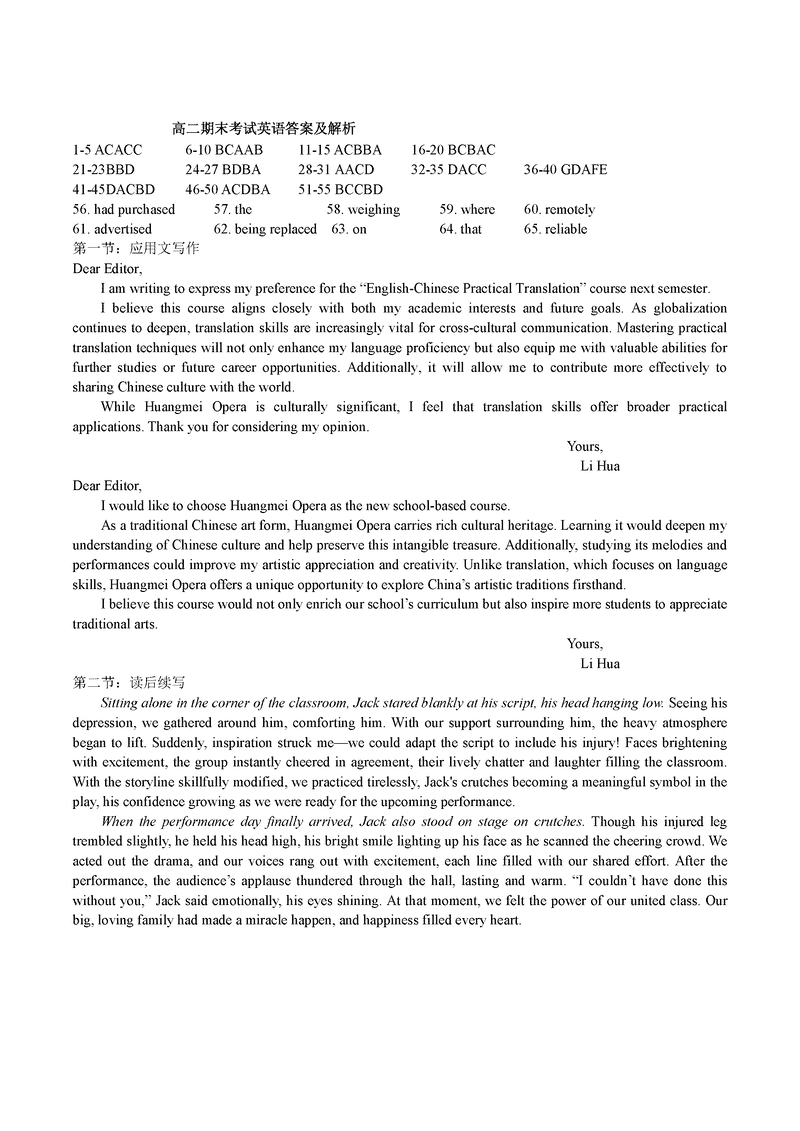 黄冈市2025年高二下学期期末英语试题及答案 时间:2025-07-08 湖北 高中英语 湖北省黄冈市2024-2025学年高二下学期期末质量监测英语考试已于近日开考,为方便考生考后及时查看考试情况,查漏补缺、弥补不足,本文整理了试题答案解析相关信息! 英语试题及答案解析