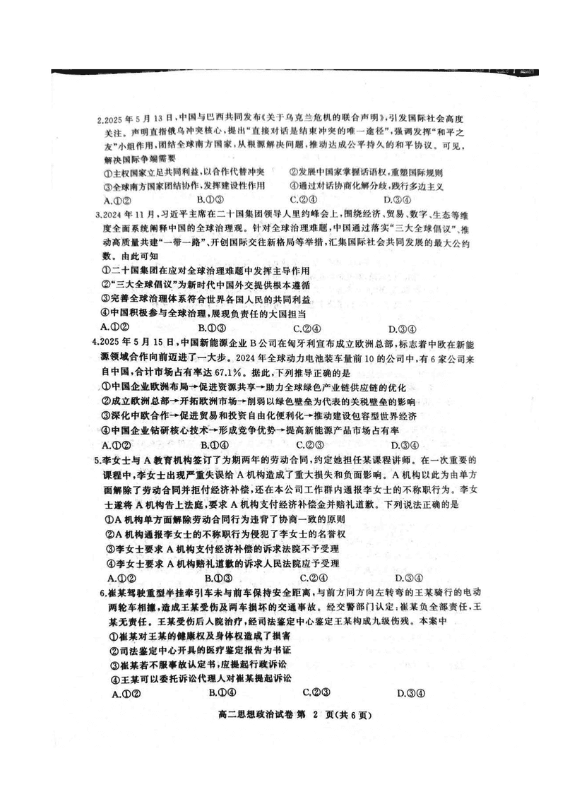 黄冈市2025年高二下学期期末政治试题及答案 时间:2025-07-08 湖北 高中政治 湖北省黄冈市2024-2025学年高二下学期期末质量监测政治考试已于近日开考,为方便考生考后及时查看考试情况,查漏补缺、弥补不足,本文整理了试题答案解析相关信息! 政治试题及答案解析