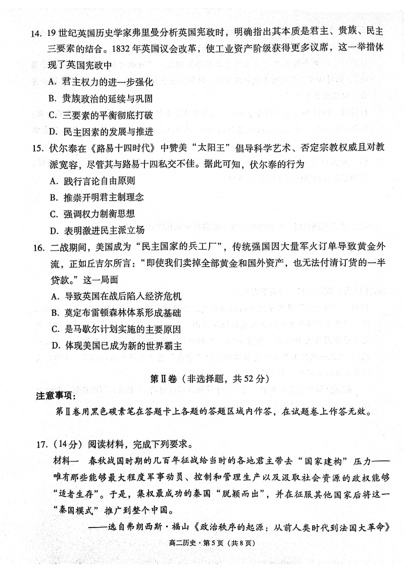 贵阳市2024-2025学年高二下学期6月期末历史试题及答案 时间:2025-07-08 贵州 高中历史 贵州省贵阳市2024-2025学年高二下学期6月期末历史考试已于近日开考,为方便考生考后及时查看考试情况,查漏补缺、弥补不足,本文整理了试题答案解析相关信息! 历史试题及答案解析