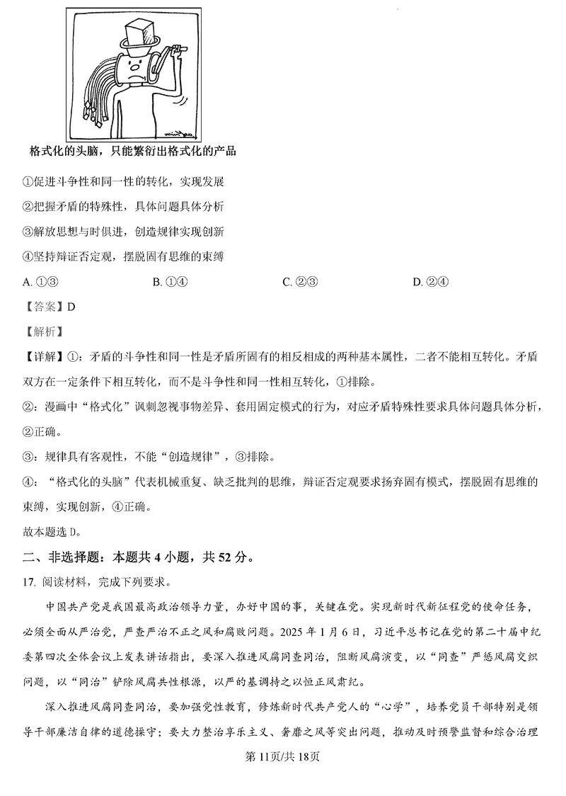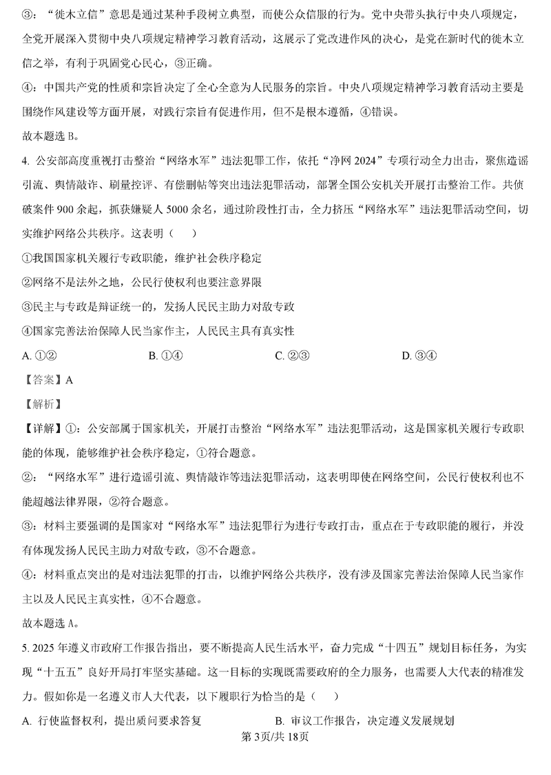 遵义市2024-2025学年高一下学期7月期末政治试题及答案 时间:2025-07-08 贵州 高中政治 贵州省遵义市2024-2025学年高一下学期7月期末学业水平监测政治考试已于近日开考,为方便考生考后及时查看考试情况,查漏补缺、弥补不足,本文整理了试题答案解析相关信息! 政治试题及答案解析