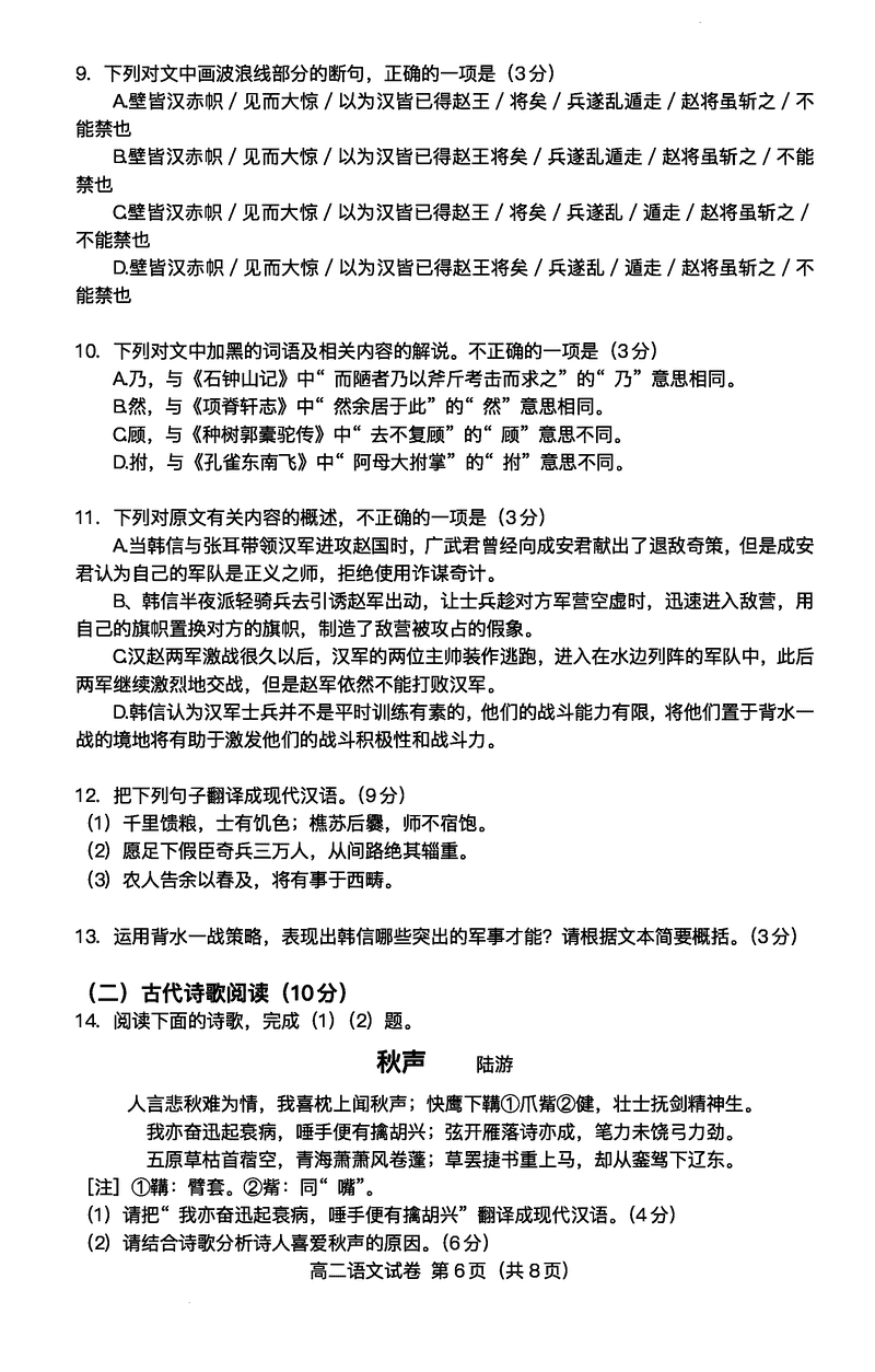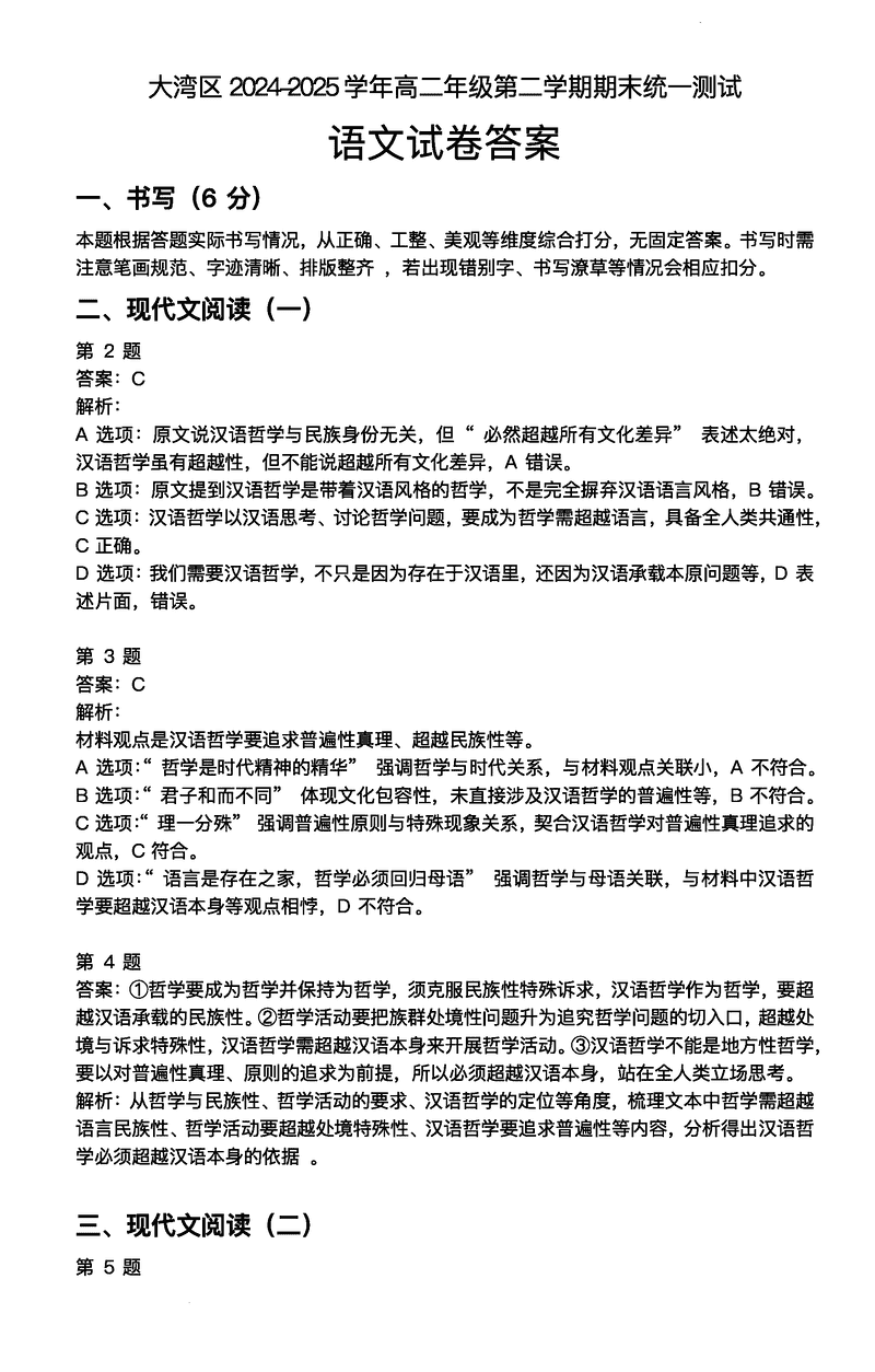广东大湾区2024-2025学年高二下学期期末语文试题及答案 时间:2025-07-09 广东 高中语文 广东省大湾区2024-2025学年高二下学期期末统一测试语文考试已于近日开考,为方便考生考后及时查看考试情况,查漏补缺、弥补不足,本文整理了试题答案解析相关信息! 语文试题及答案解析