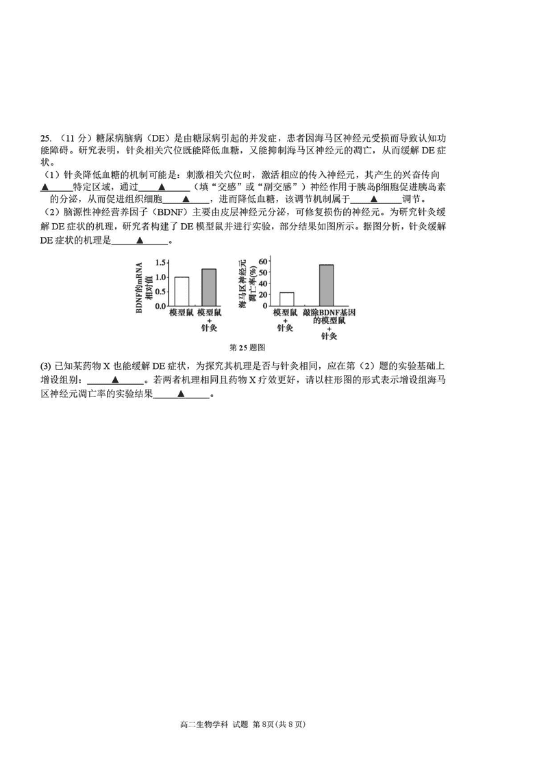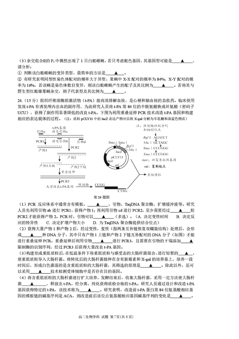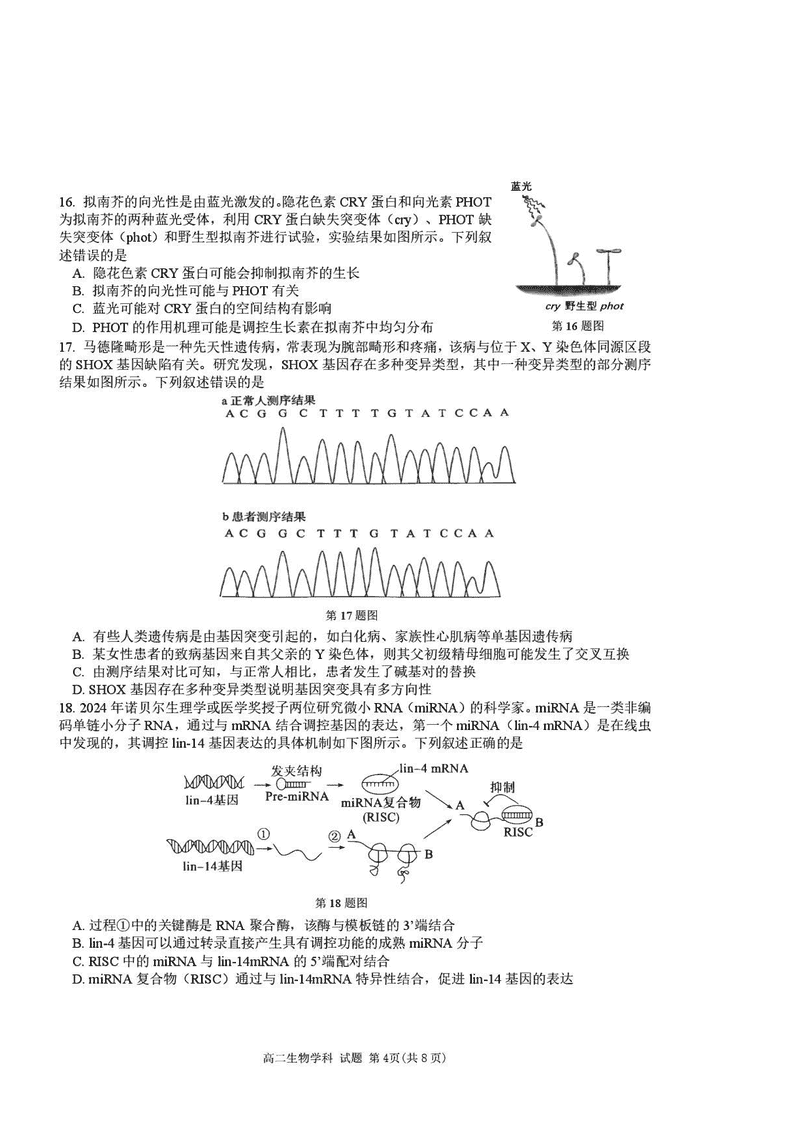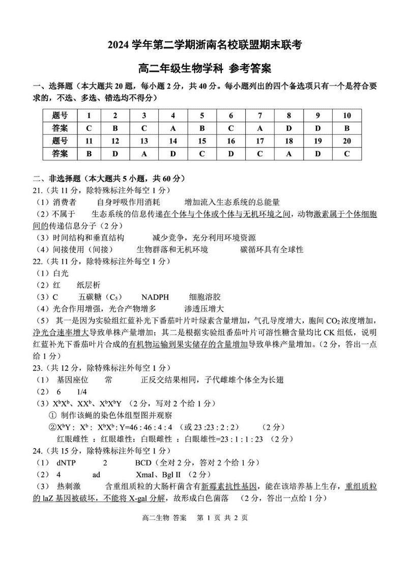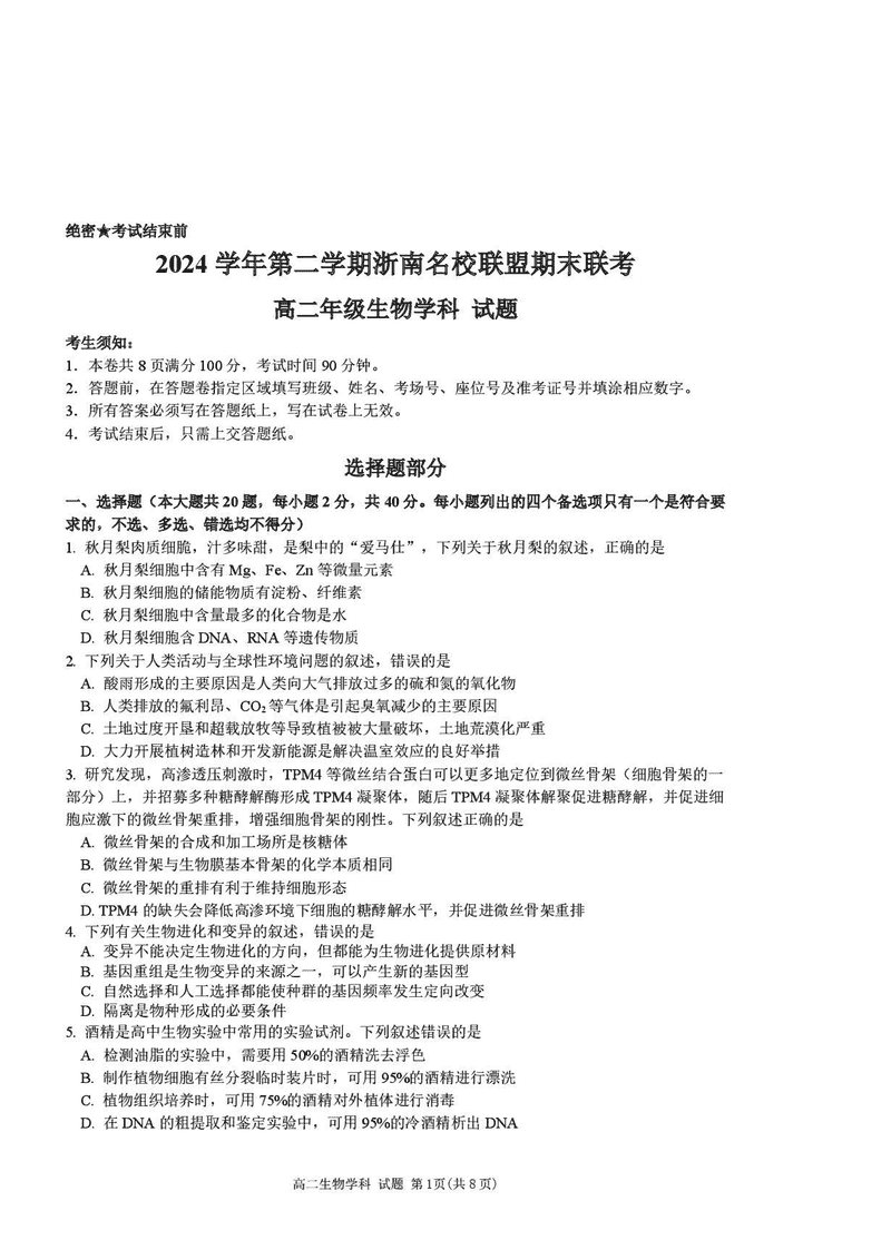 浙江浙南名校2024-2025学年高二下学期6月期末生物试题及答案 时间:2025-07-10 浙江 高中生物 浙江省温州市浙南名校2024-2025学年高二下学期6月期末生物考试已于近日开考,为方便考生考后及时查看考试情况,查漏补缺、弥补不足,本文整理了试题答案解析相关信息! 生物试题及答案解析