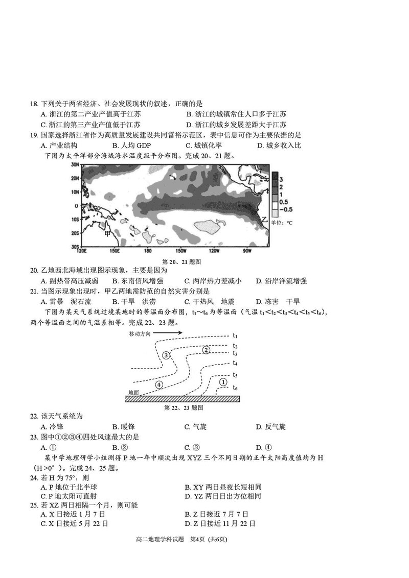 浙江浙南名校2024-2025学年高二下学期6月期末地理试题及答案 时间:2025-07-10 浙江 高中地理 浙江省温州市浙南名校2024-2025学年高二下学期6月期末地理考试已于近日开考,为方便考生考后及时查看考试情况,查漏补缺、弥补不足,本文整理了试题答案解析相关信息! 地理试题及答案解析
