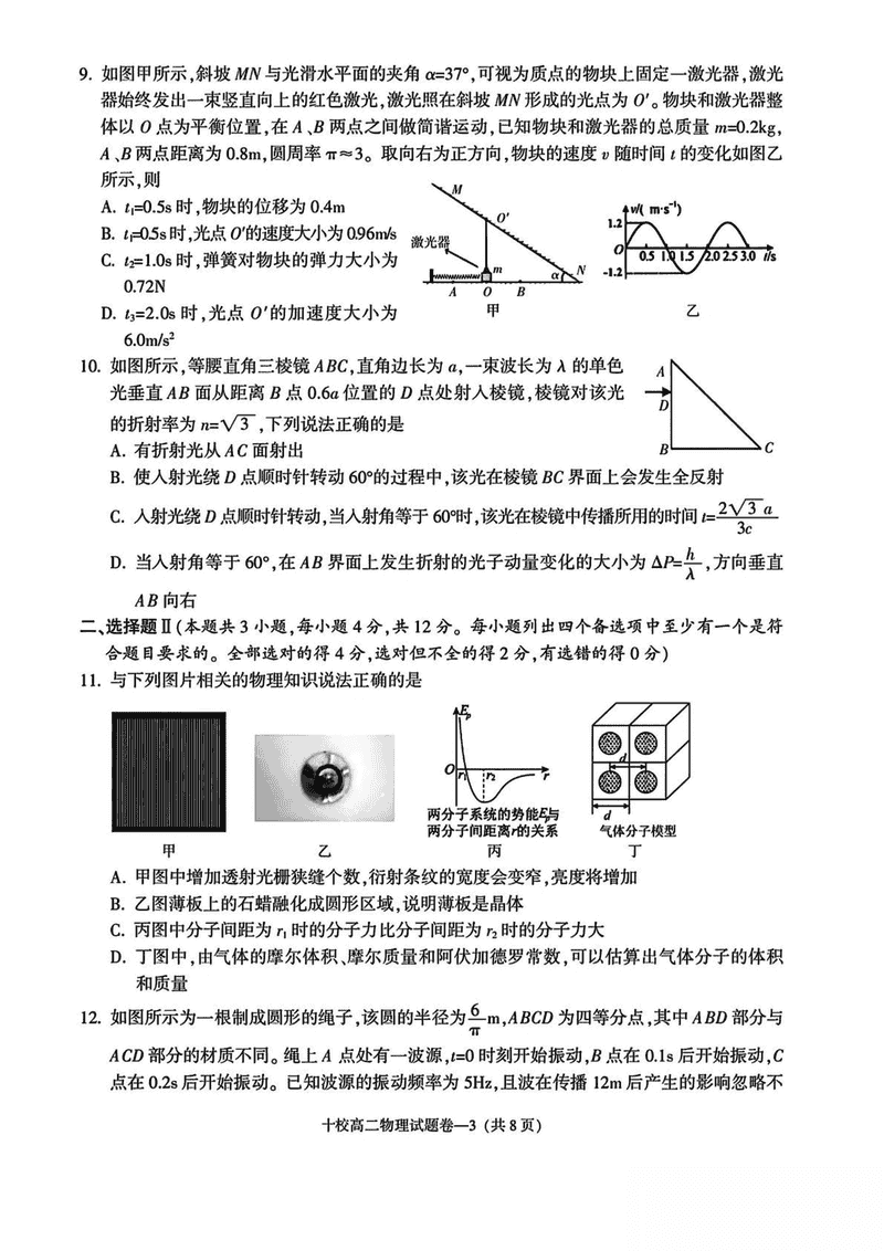 金华市十校2024-2025学年高二下学期6月期末调研物理试题及答案 时间:2025-07-10 浙江 高中物理 浙江省金华市十校2024-2025学年高二下学期6月期末调研物理考试已于近日开考,为方便考生考后及时查看考试情况,查漏补缺、弥补不足,本文整理了试题答案解析相关信息! 物理试题及答案解析