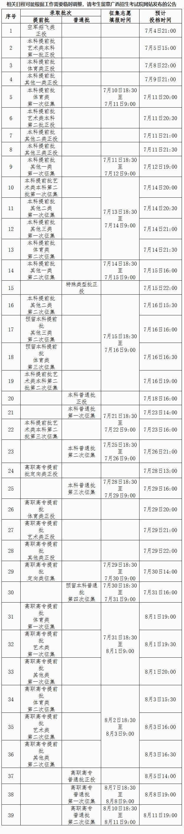 2025广西高考本科投档后,考生一般可在3-5个工作日显示录取结果。2025广西高考本科录取时间如下: