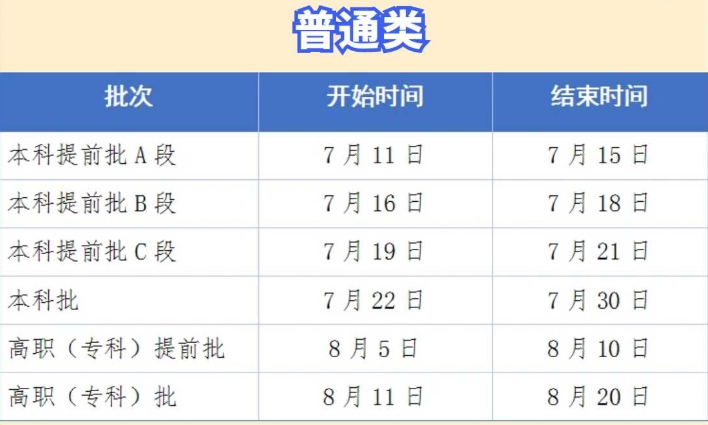 贵州省2025年普通高校招生网上录取时间安排如下: