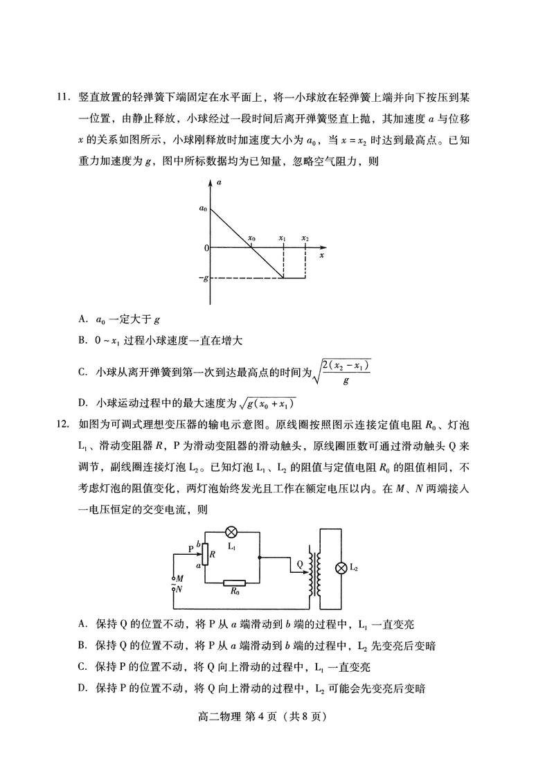 山东潍坊2026届高二阶段性调研监测物理试题及答案 时间:2025-07-13 山东 理综试题 山东省潍坊市2026届高二阶段性调研监测(高二下学期期末)物理考试已于近日开考,为方便考生考后及时查看考试情况,查漏补缺、弥补不足,本文整理了试题答案解析相关信息! 汇总:山东潍坊2026届高二阶段性调研监测试题及答案汇总 物理试题及答案解析