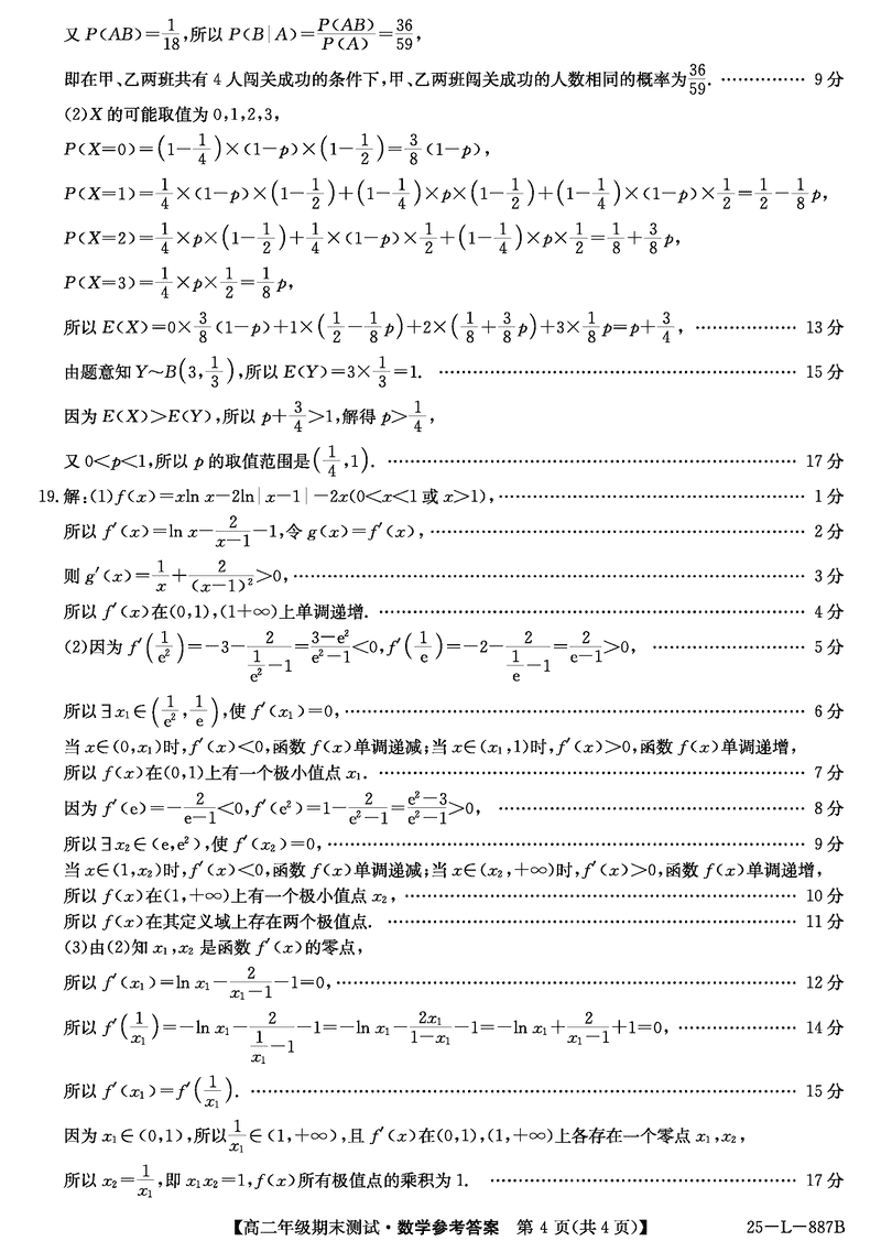 河北卓越联盟2024-2025学年度高二期末数学试题及答案
