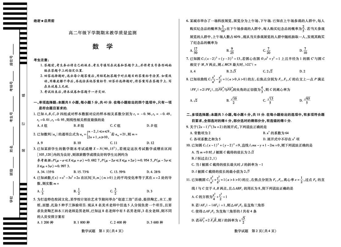 天一大联考·河南省2024-2025高二下学期期末数学考试已于近日开考,为方便考生考后及时查看考试情况,查漏补缺、弥补不足,本文整理了试题答案解析相关信息!
