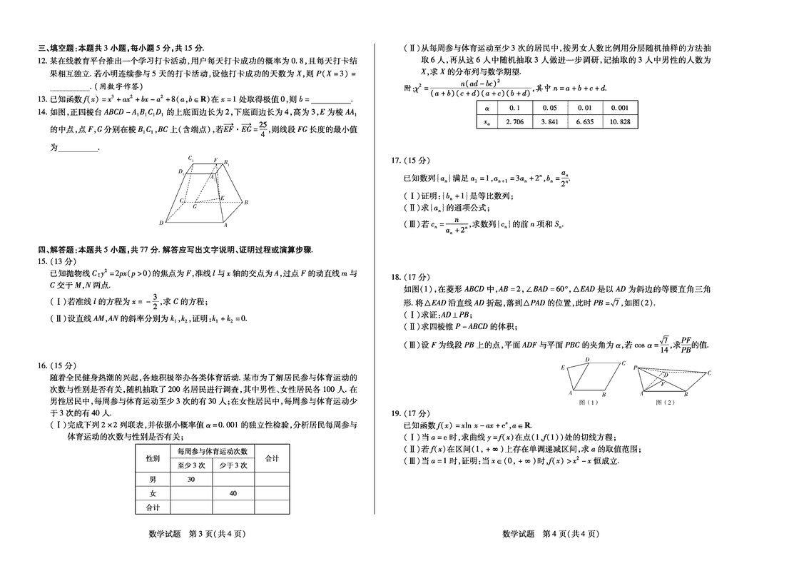 天一大联考·河南省2024-2025高二下学期期末数学试题及答案