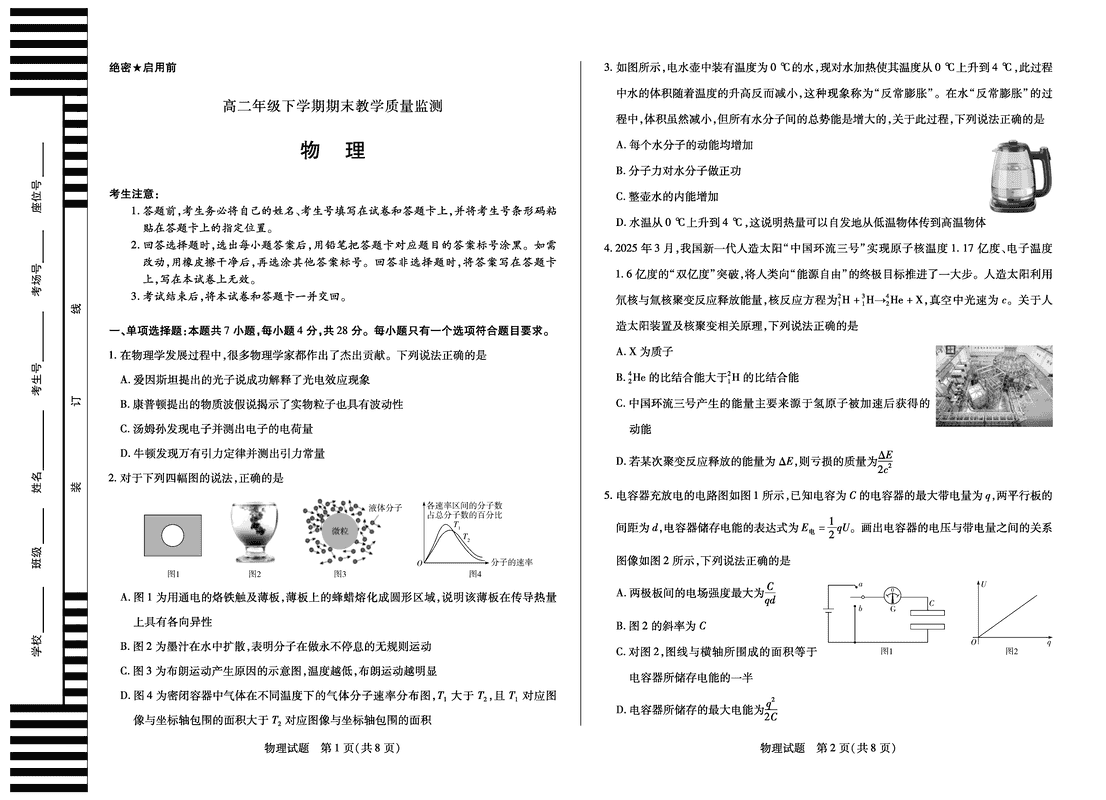 天一大联考·河南省2024-2025高二下学期期末物理考试已于近日开考,为方便考生考后及时查看考试情况,查漏补缺、弥补不足,本文整理了试题答案解析相关信息!