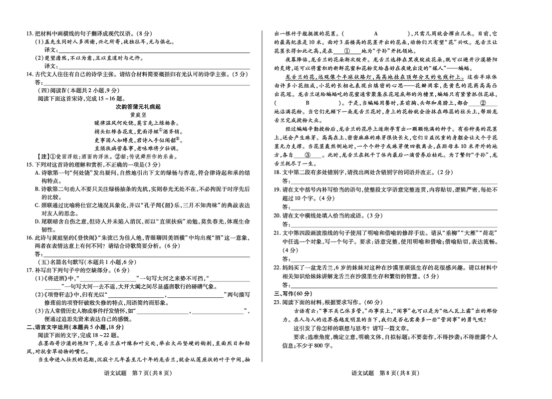 河南 语文试题