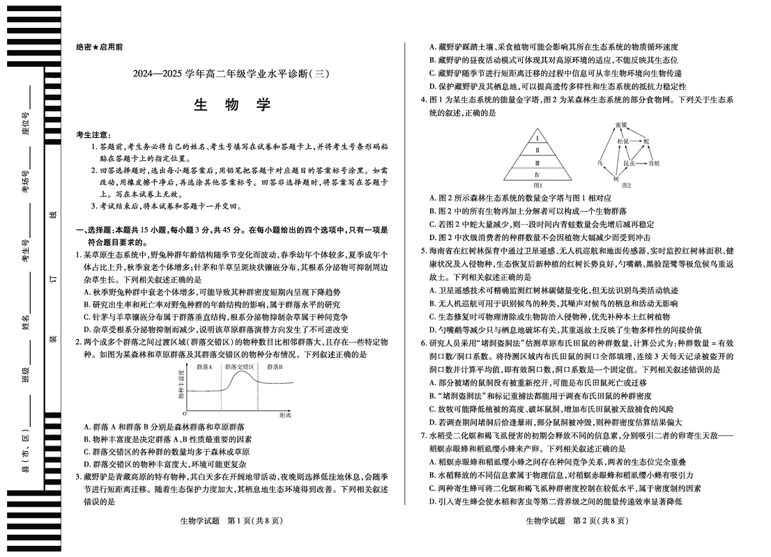 天一大联考·海南省2024-2025学年高二下学期学业水平诊断(三)生物试题及答案