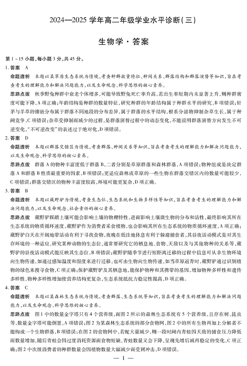 天一大联考·海南省2024-2025学年高二下学期学业水平诊断(三)生物考试已于近日开考,为方便考生考后及时查看考试情况,查漏补缺、弥补不足,本文整理了试题答案解析相关信息!