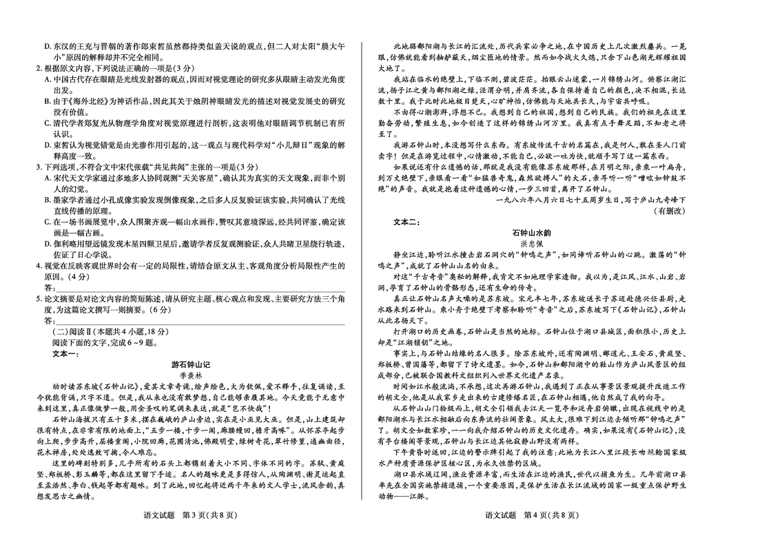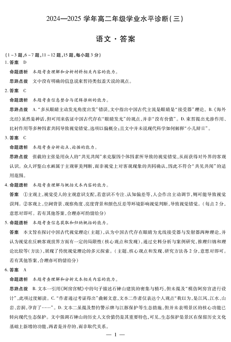 天一大联考·海南省2024-2025学年高二下学期学业水平诊断(三)语文试题及答案