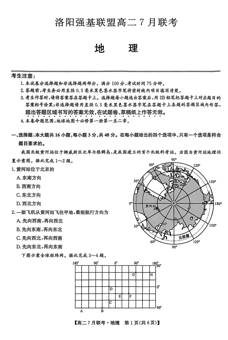 洛阳强基联盟2025年高二7月联考地理试题及答案 时间:2025-07-14 河南 文综试题 河南洛阳强基联盟2025年高二7月联考地理考试已于近日开考,为方便考生考后及时查看考试情况,查漏补缺、弥补不足,本文整理了试题答案解析相关信息! 汇总:河南洛阳市强基联盟2025年高二7月联考 地理试题及答案解析