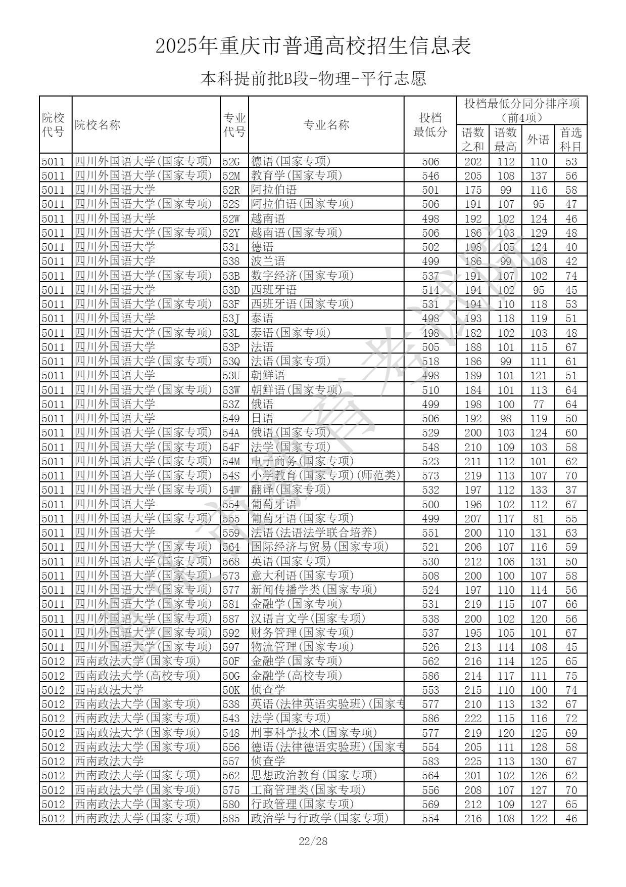 2025重庆高考本科提前批B段投档最低分是多少(物理类)