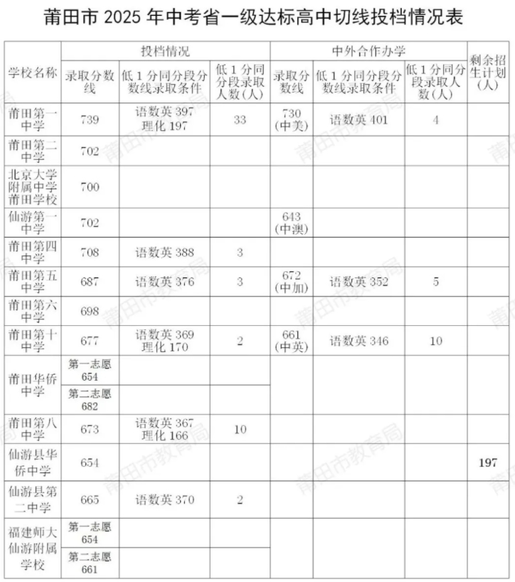 经市招委会研究同意,现将莆田市2025年中考省一级达标高中招生录取控制线、普通高中最低录取控制线、省一级达标高中切线投档情况和普通高中体育艺术特长生剩余招生计划情况予以公布。