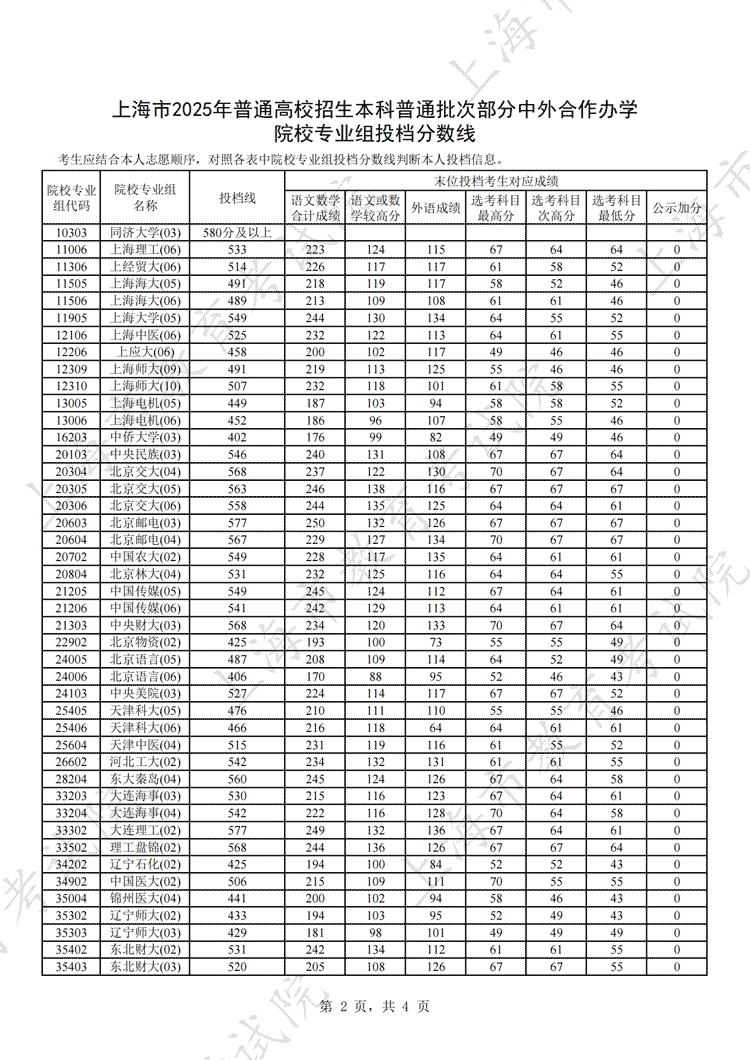 上海市2025年普通高校招生本科普通批次平行志愿院校Q组及部分中外合作办学院校专业组投档分数线公布 时间:2025-07-21 上海 高考新闻 上海市2025年普通高校招生本科普通批次平行志愿院校Q组及部分中外合作办学院校专业组投档分数线公布,详见↓