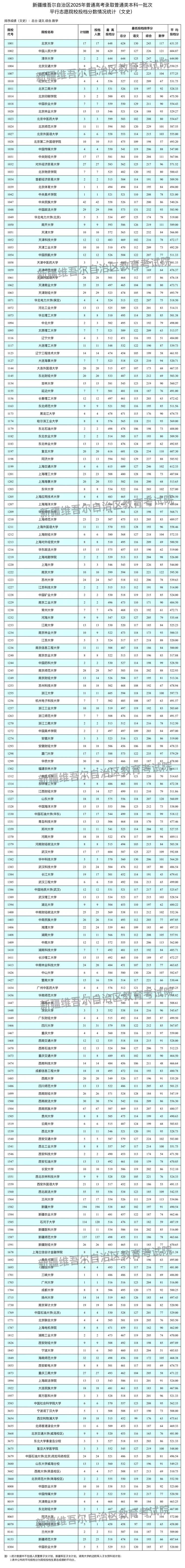 新疆维吾尔自治区2025年普通高校招生普通类本科一批次投档情况