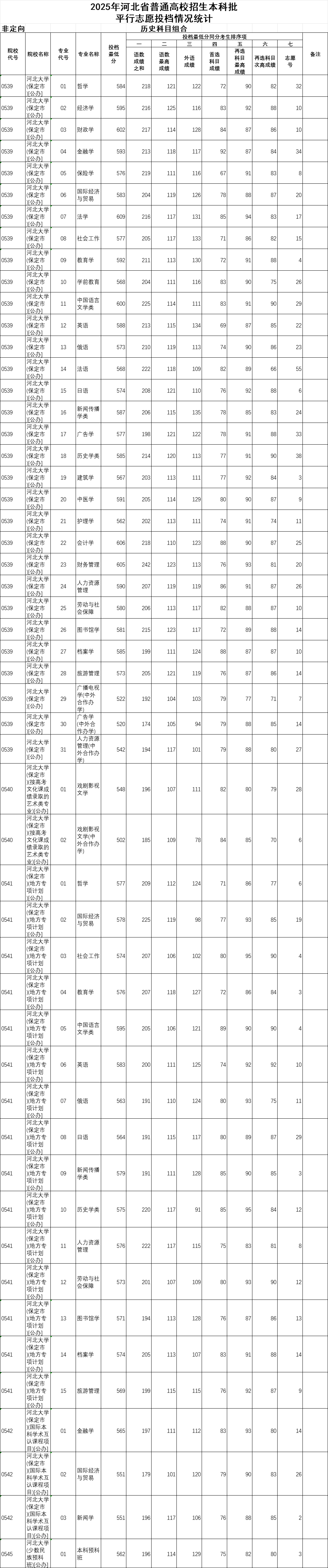 河北大学2025年河北省本科批平行志愿投档情况已发布,具体内容如下: