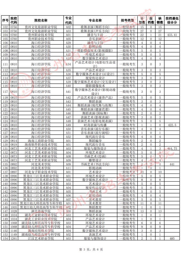 贵州省2025年高考艺术类高职(专科)批第2次征集志愿投档情况已发布,具体内容如下: