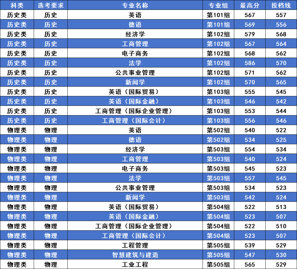 南昌航空大学2025年江西省各专业组分专业投档线公布