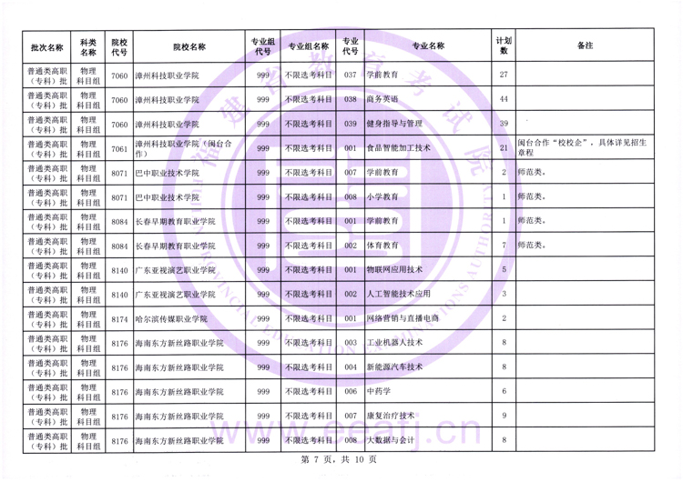 今年福建省普通类高职(专科)批物理科目组仍有缺额计划须进行征求志愿(具体附后)。请考生在填报征求志愿时注意以下事项: