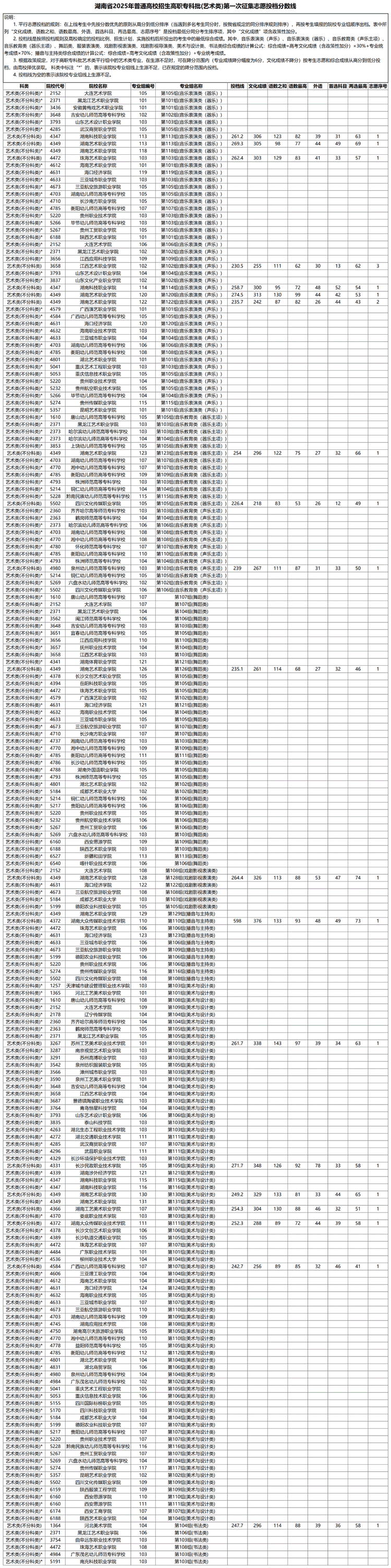 湖南省2025年普通高校招生高职专科批(艺术类)第一次征集志愿投档分数线 时间:2025-08-15 湖南 高考新闻 湖南省2025年普通高校招生高职专科批(艺术类)第一次征集志愿投档分数线已发布,具体内容如下: