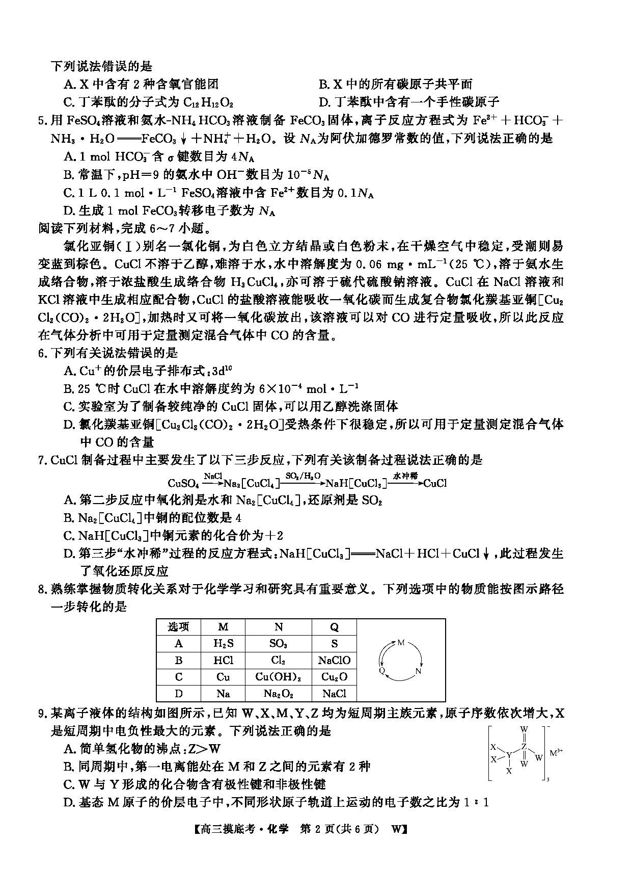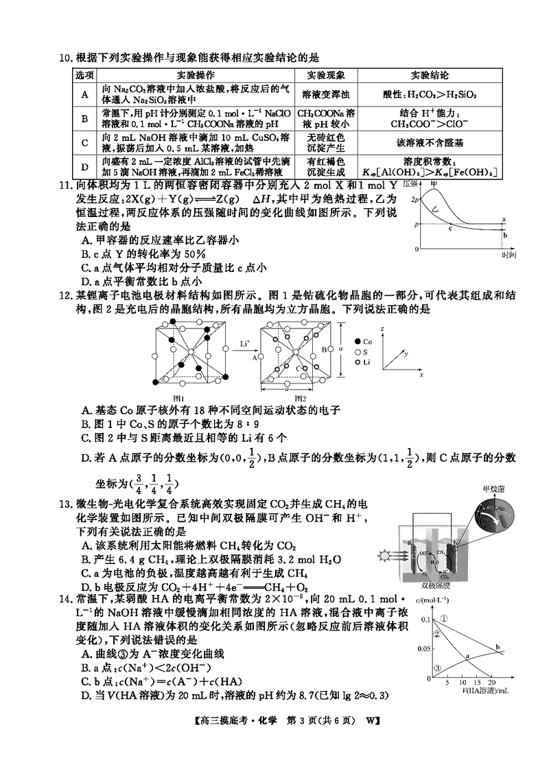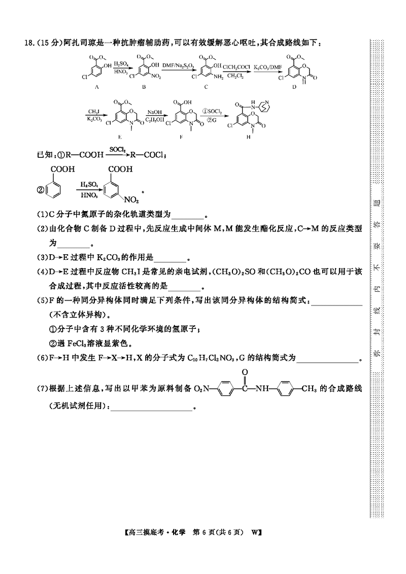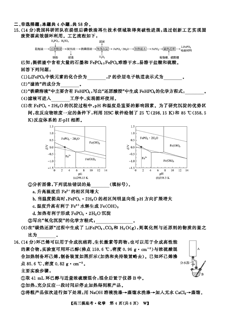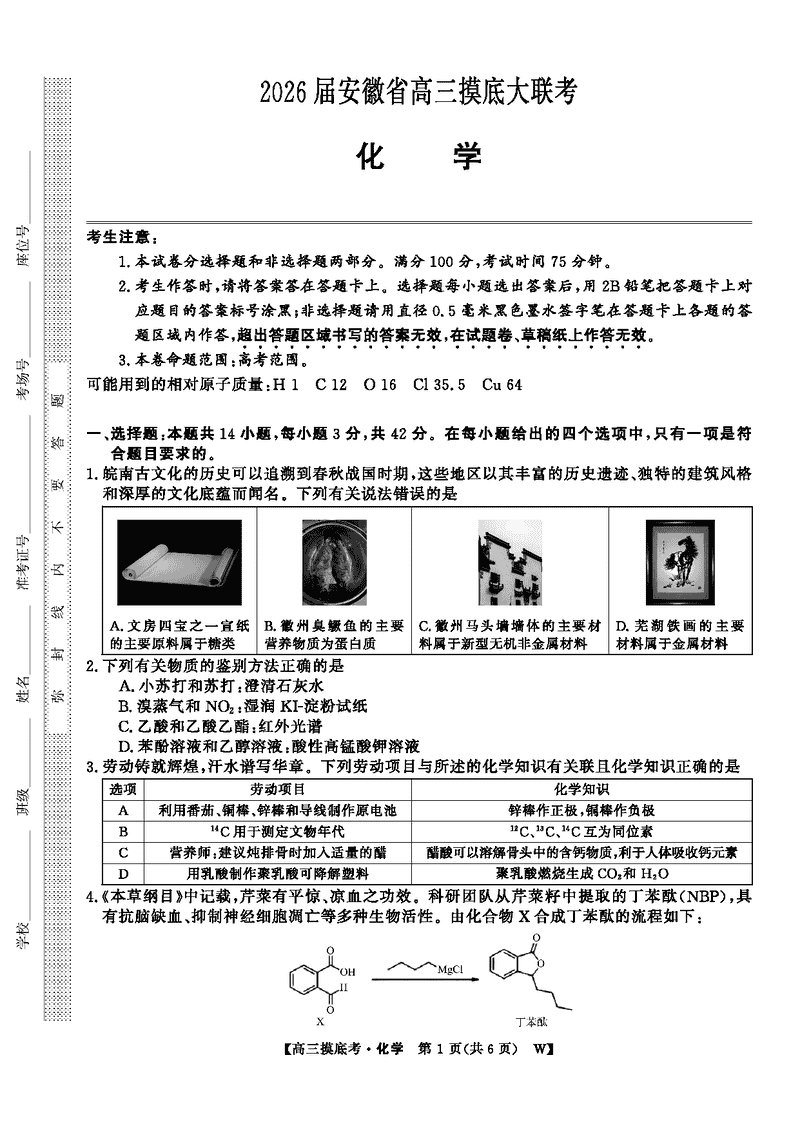 皖南八校2026届高三上学期8月摸底大联考化学试题及答案