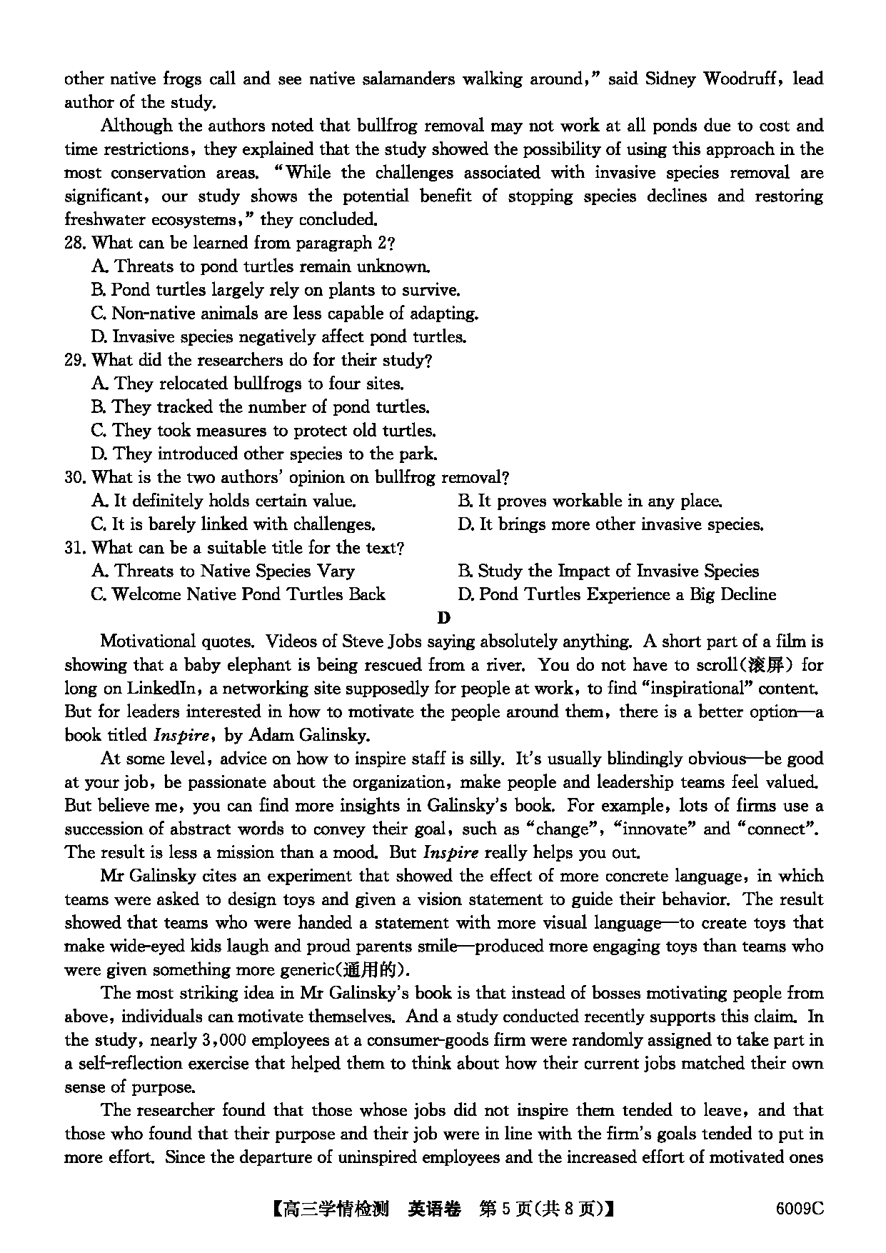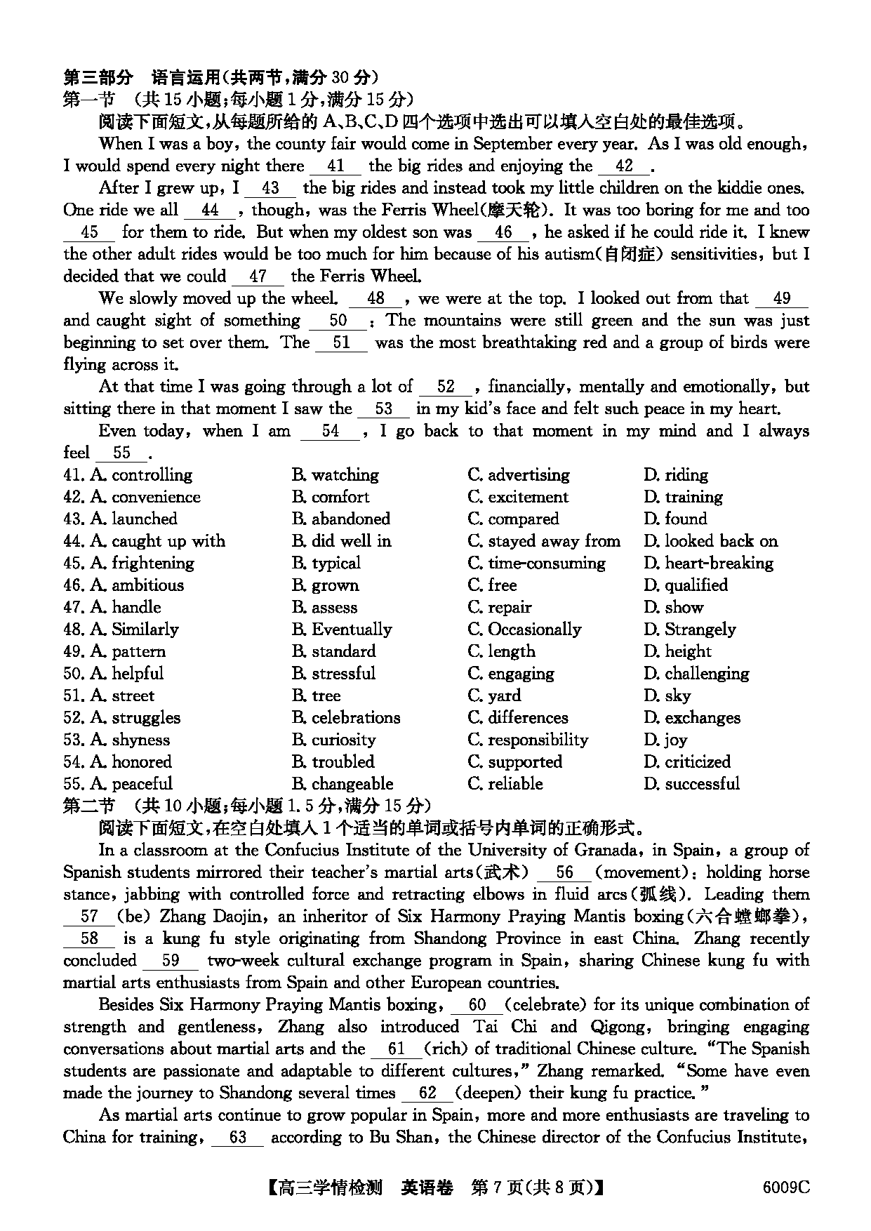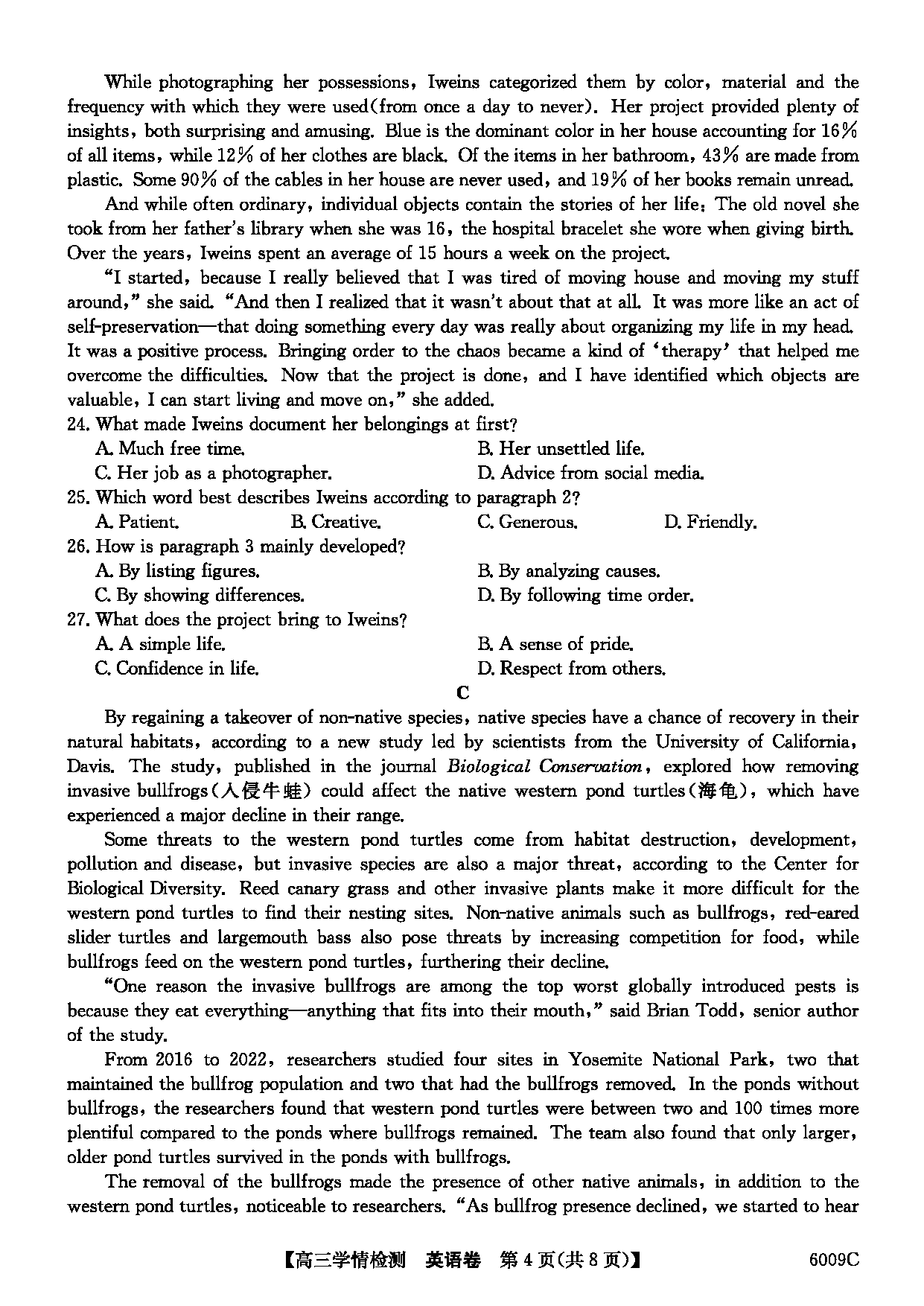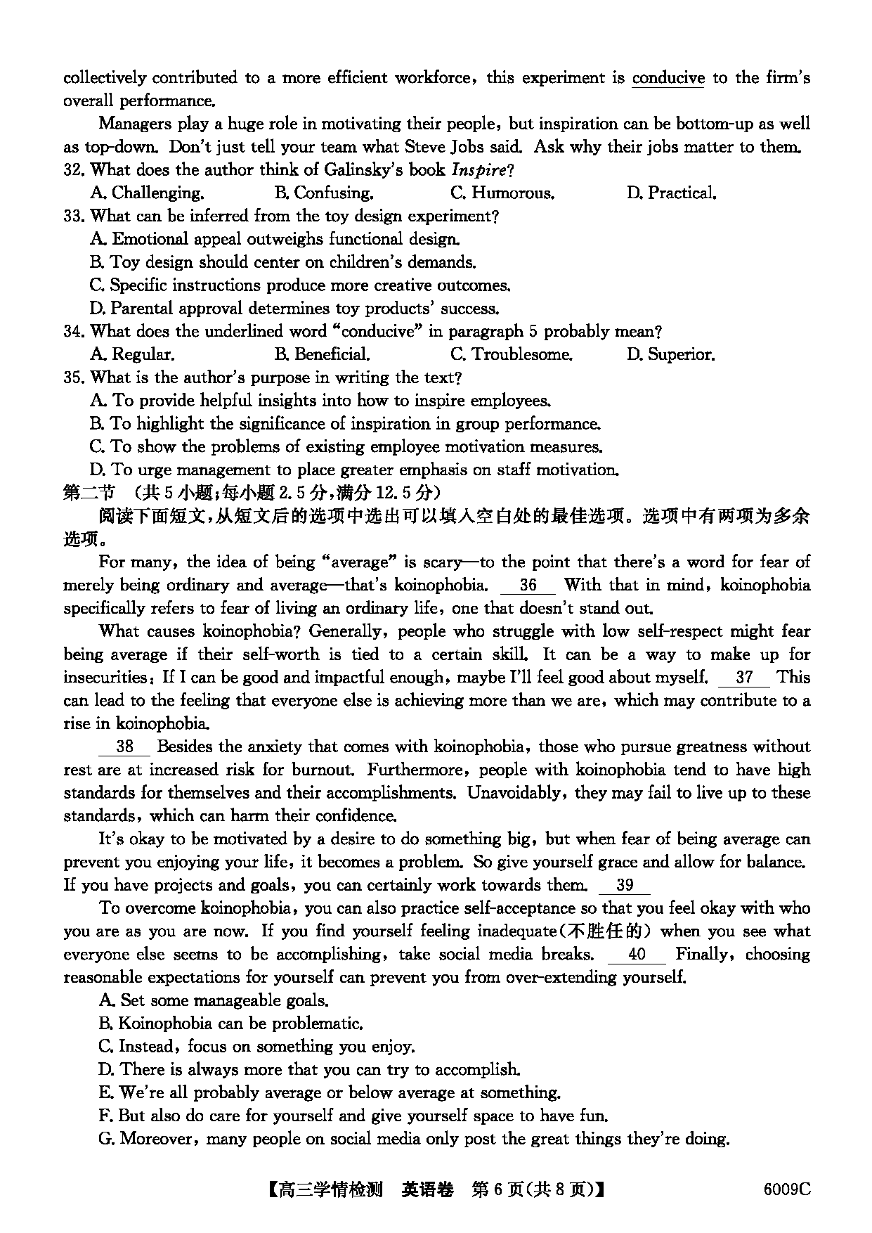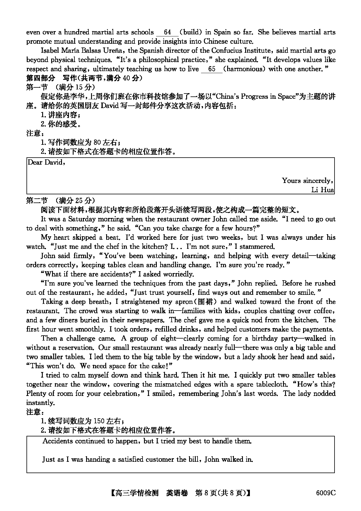 安徽县中联盟2026届高三上学期学情检测英语试题及答案