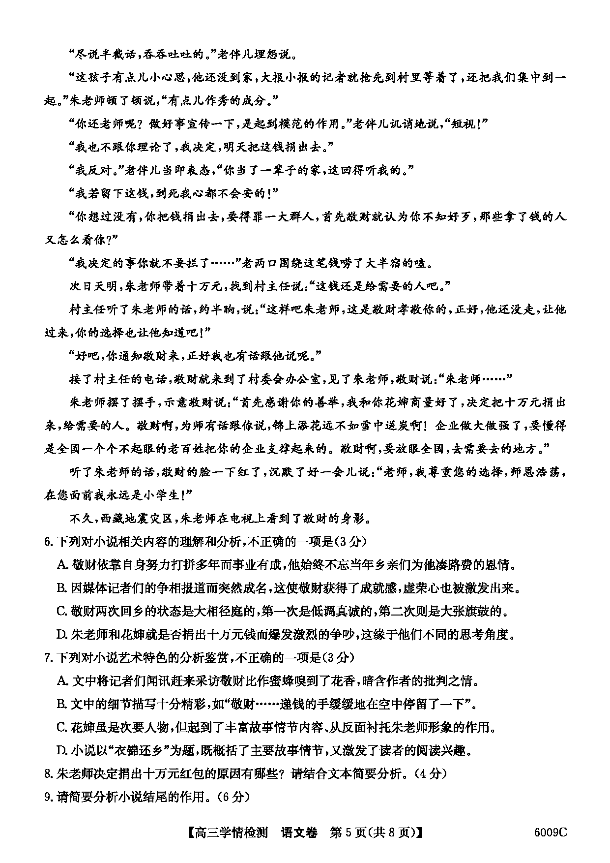 安徽县中联盟2026届高三上学期学情检测语文试题及答案