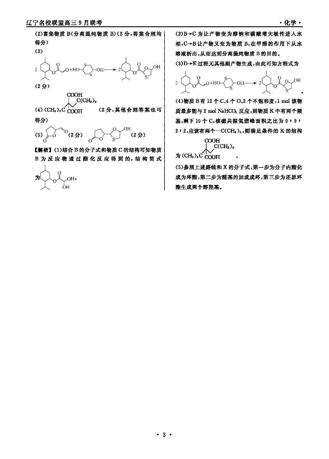 辽宁名校联盟2025年高三9月联考化学考试已于近日开考,为方便考生考后及时查看考试情况,查漏补缺、弥补不足,本文整理了试题答案解析相关信息!