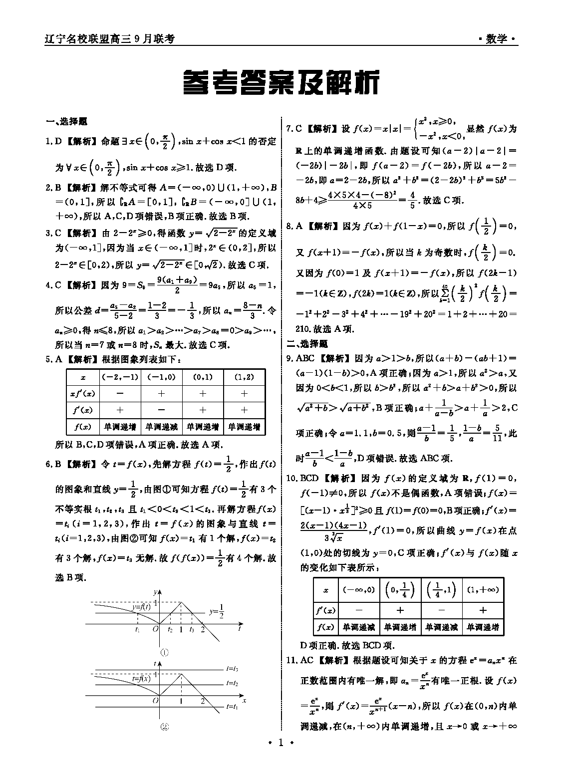 辽宁名校联盟2025年高三9月联考数学试题及答案