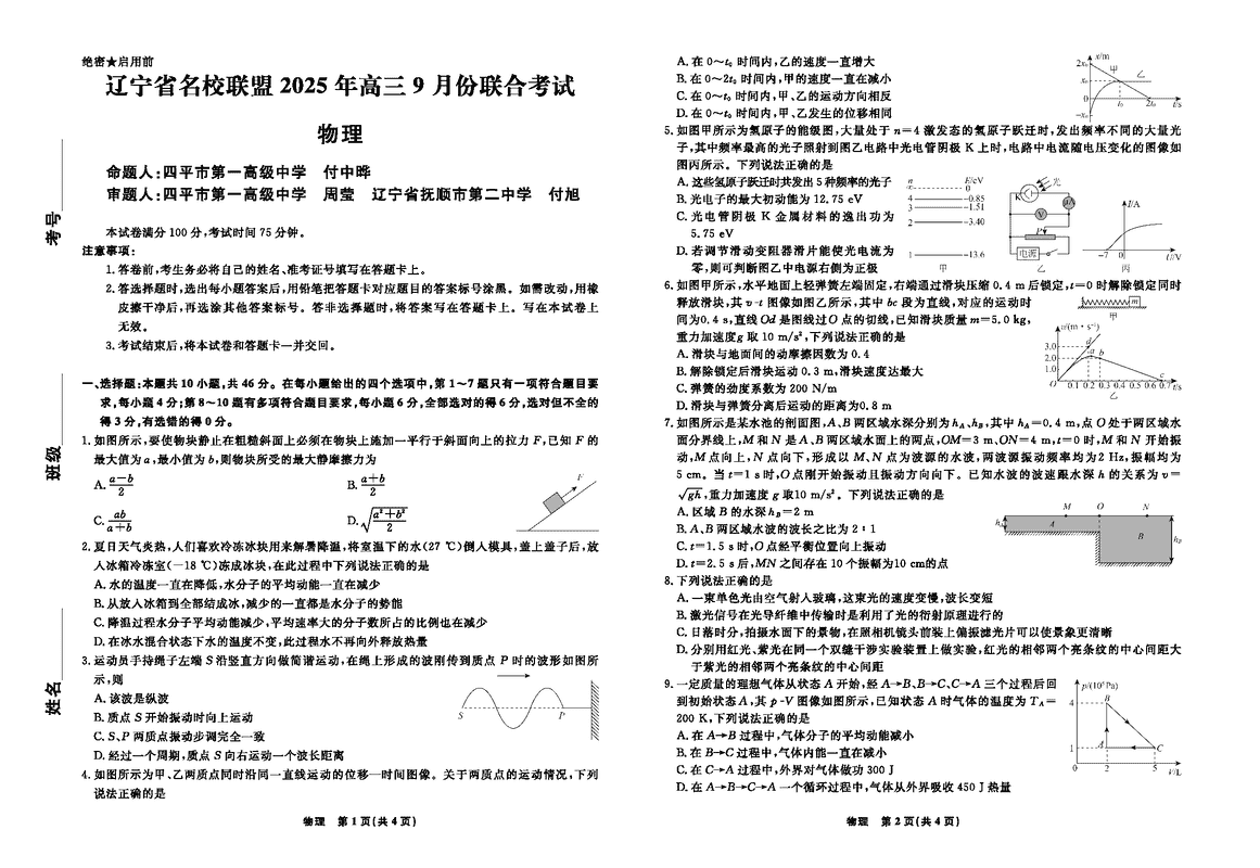 辽宁名校联盟2025年高三9月联考物理试题及答案
