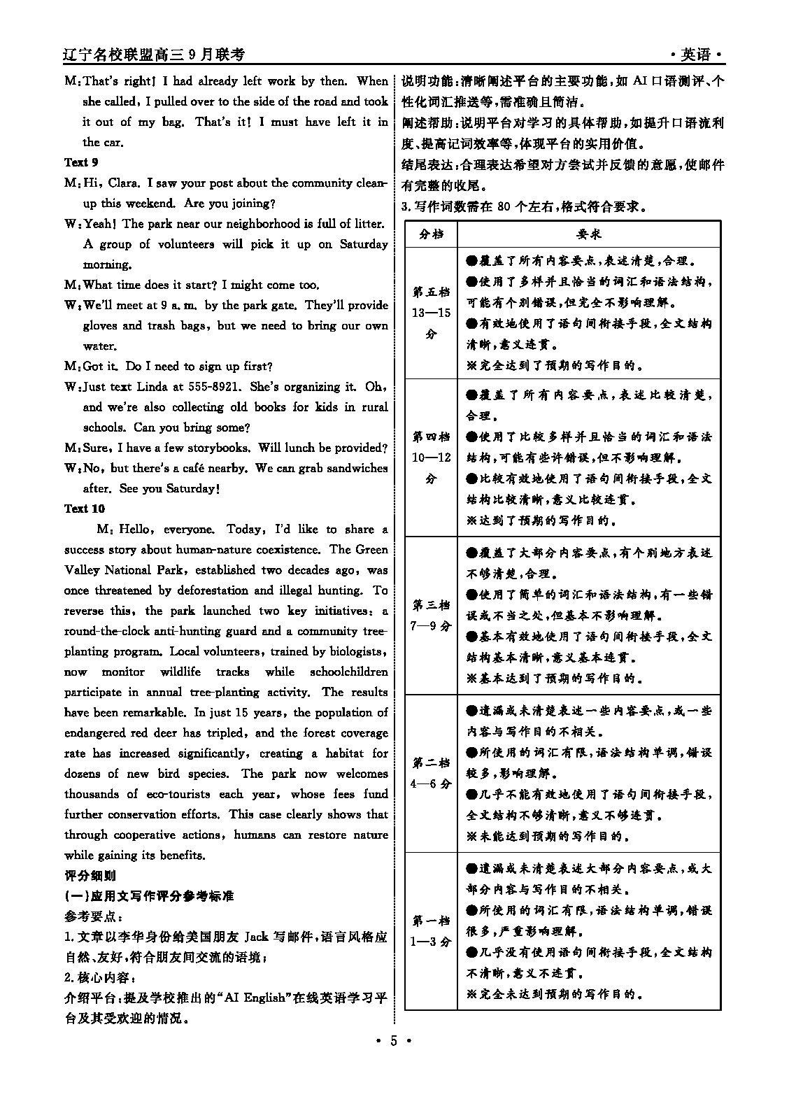 辽宁名校联盟2025年高三9月联考英语试题及答案