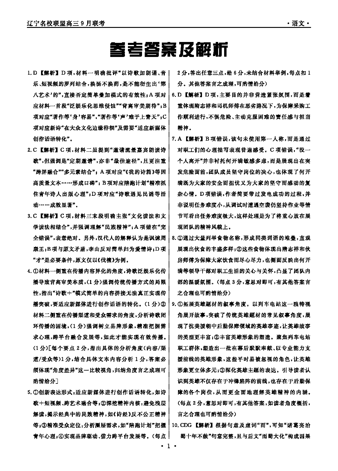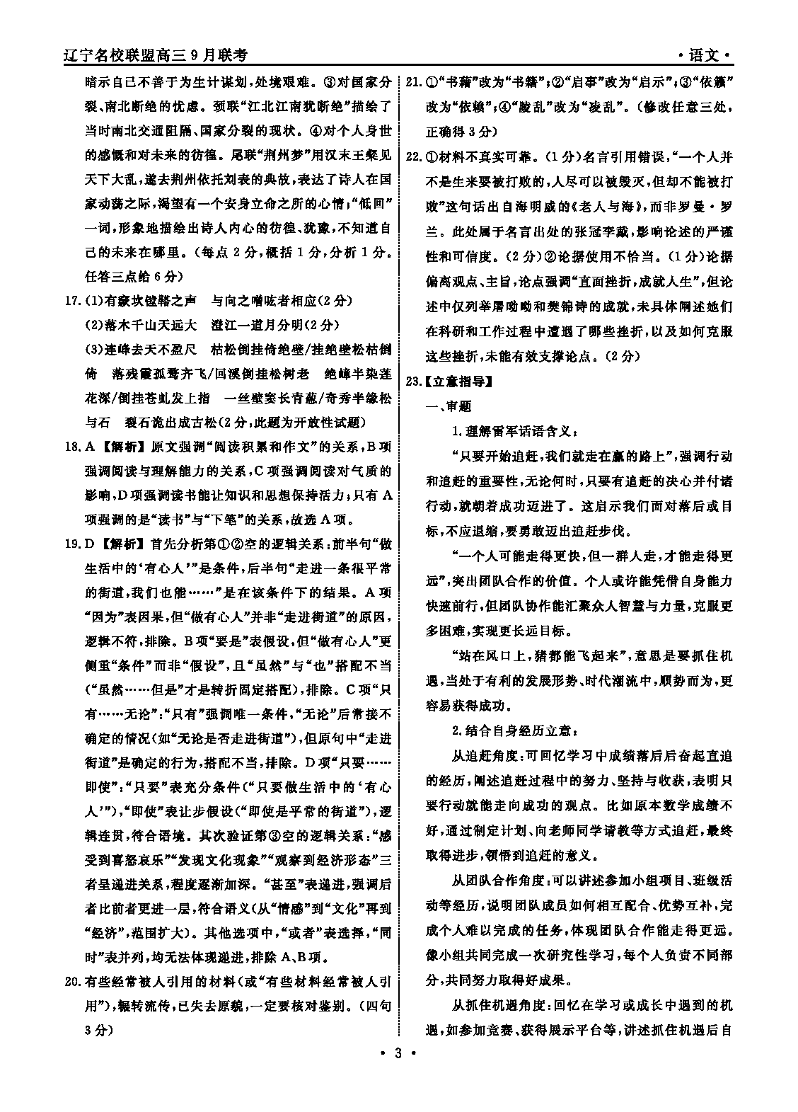 辽宁名校联盟2025年高三9月联考语文考试已于近日开考,为方便考生考后及时查看考试情况,查漏补缺、弥补不足,本文整理了试题答案解析相关信息!