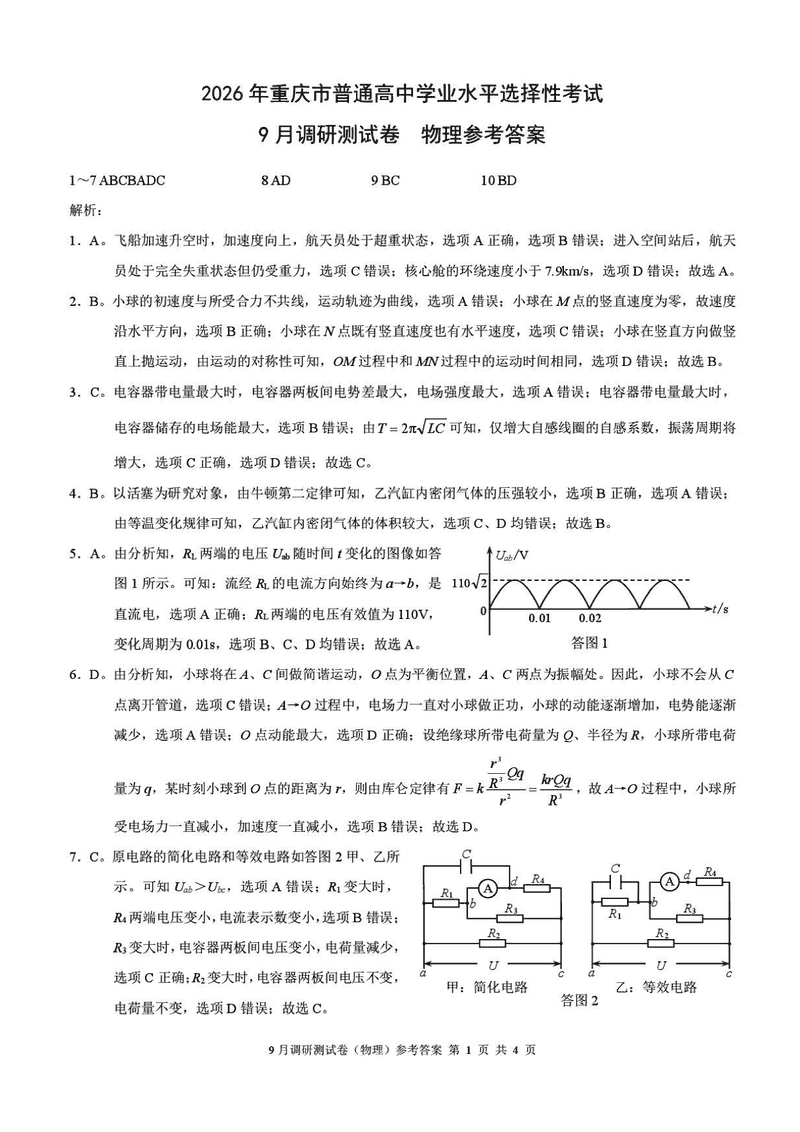 重庆康德卷2026年高三上学期9月调研物理考试已于近日开考,为方便考生考后及时查看考试情况,查漏补缺、弥补不足,本文整理了试题答案解析相关信息!