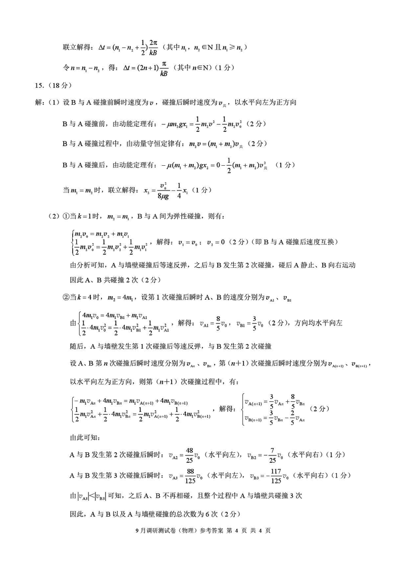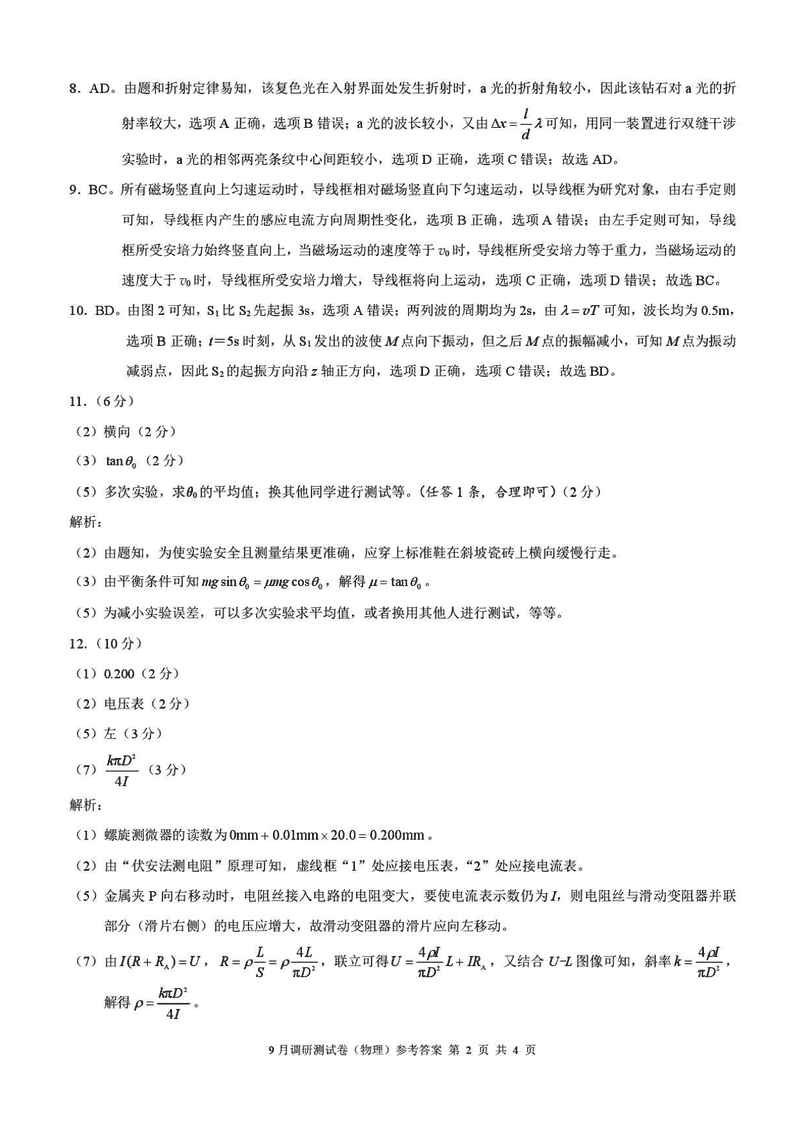 重庆康德卷2026年高三上学期9月调研物理试题及答案