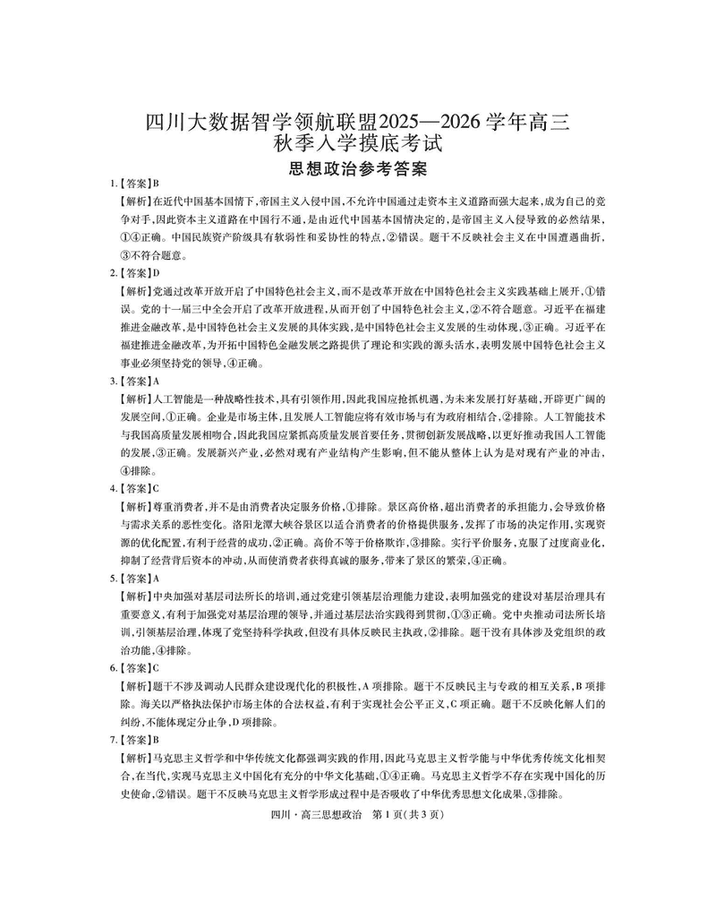 四川大数据智学领航联盟2025-2026学年高三秋入学摸底政治考试已于近日开考,为方便考生考后及时查看考试情况,查漏补缺、弥补不足,本文整理了试题答案解析相关信息!