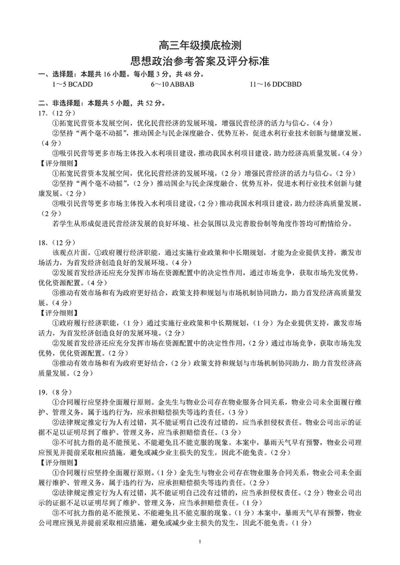 四川蓉城名校联盟2025-2026学年高三上学期开学摸底政治试题及答案