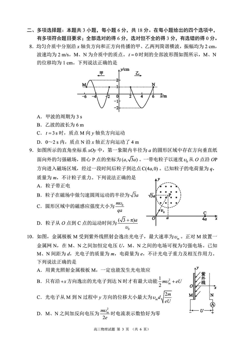 四川蓉城名校联盟2025-2026学年高三上学期开学摸底物理试题及答案