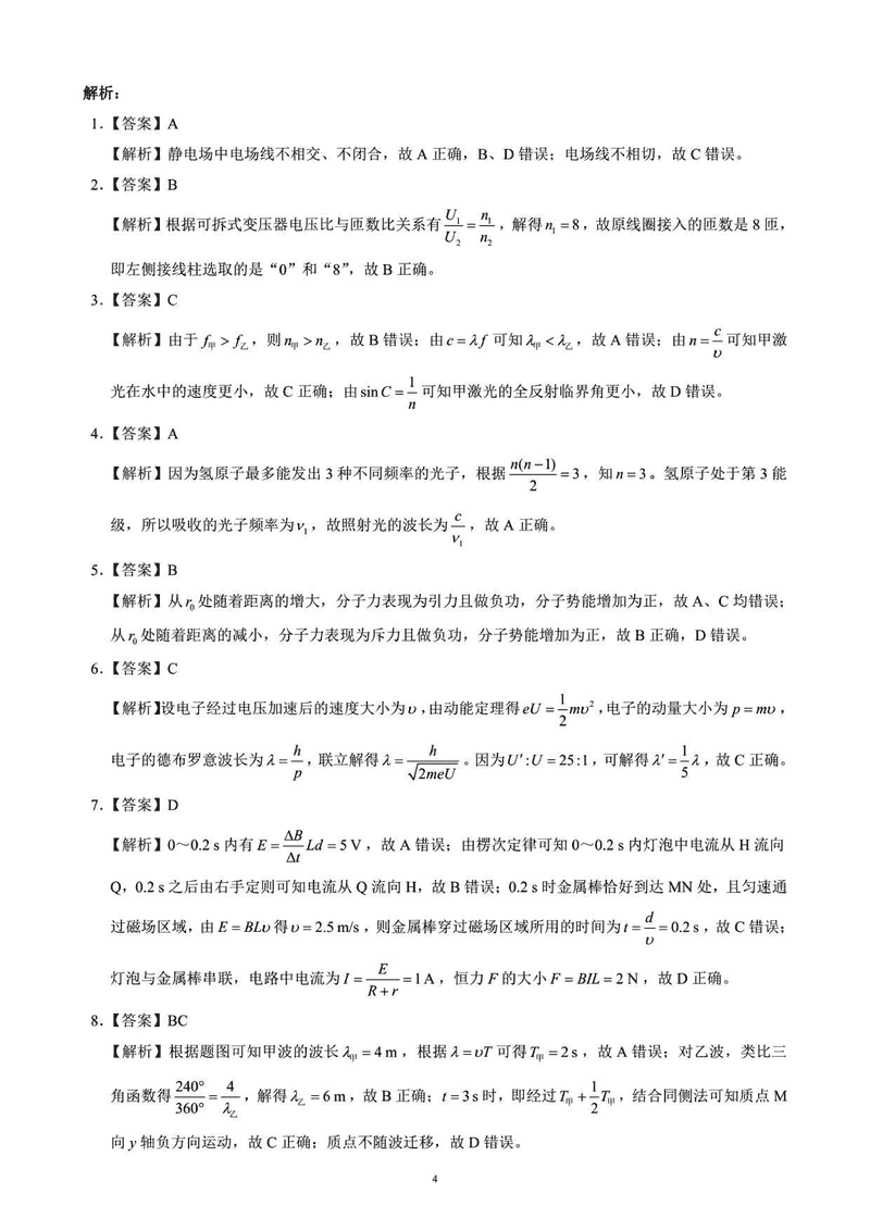 物理试题及答案解析