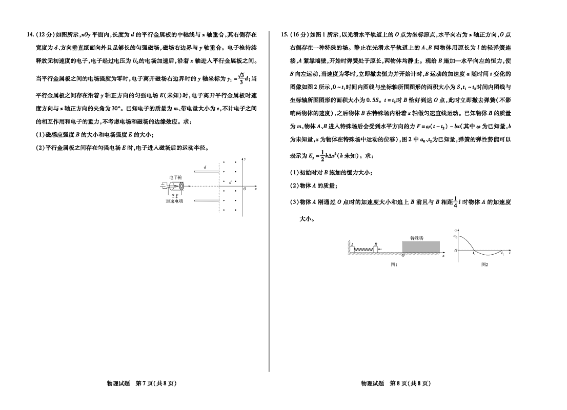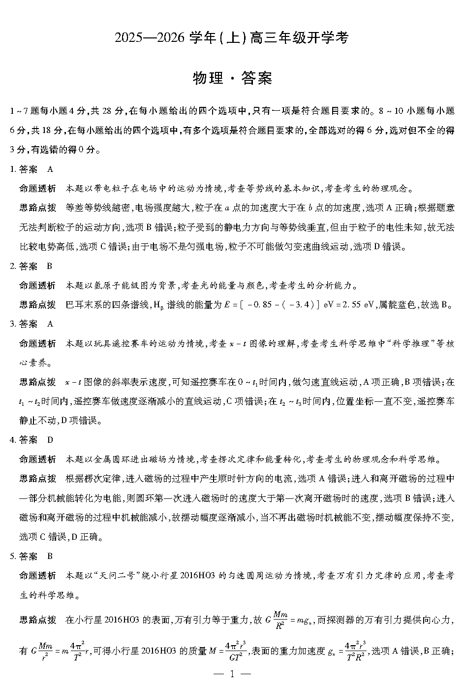 河南天一大联考2025-2026学年高三上学期开学考物理考试已于近日开考,为方便考生考后及时查看考试情况,查漏补缺、弥补不足,本文整理了试题答案解析相关信息!