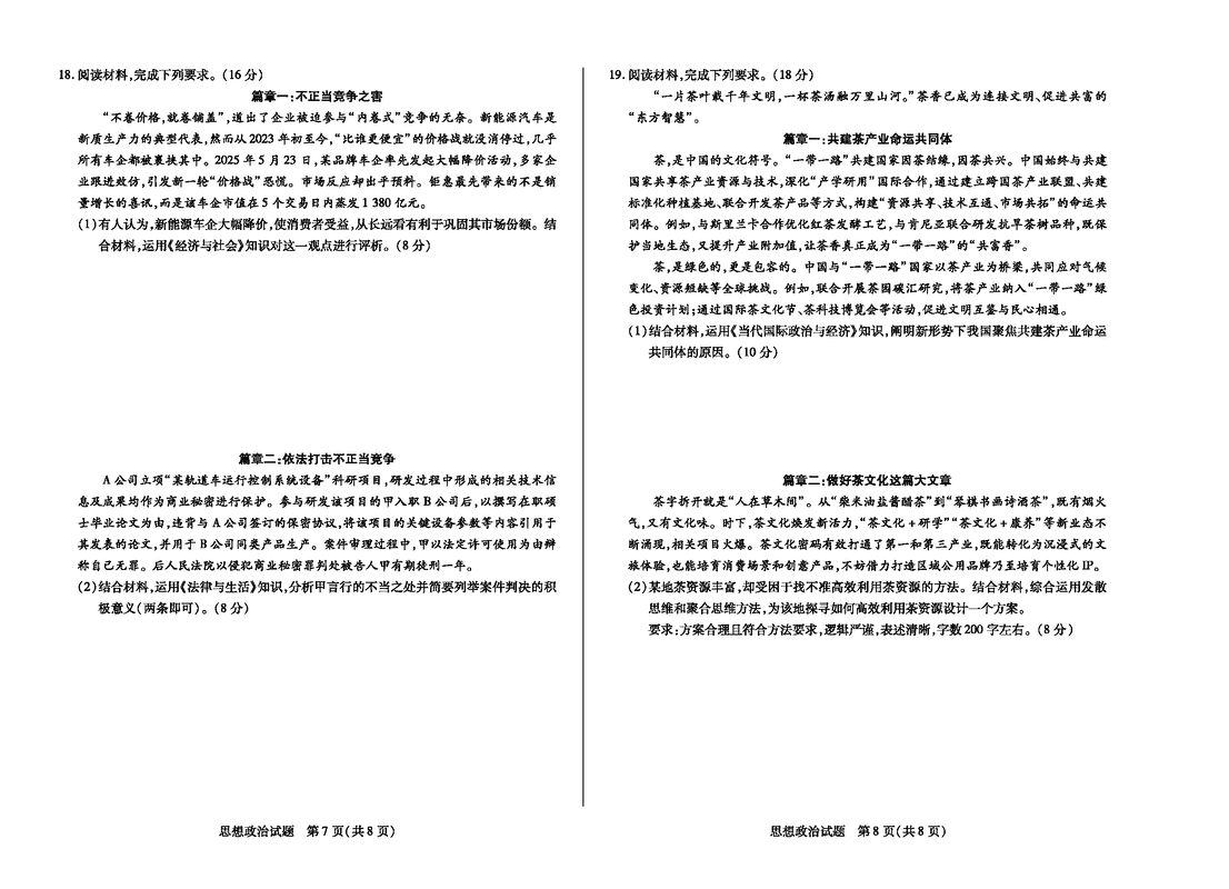 河南天一大联考2025-2026学年高三上学期开学考政治试题及答案