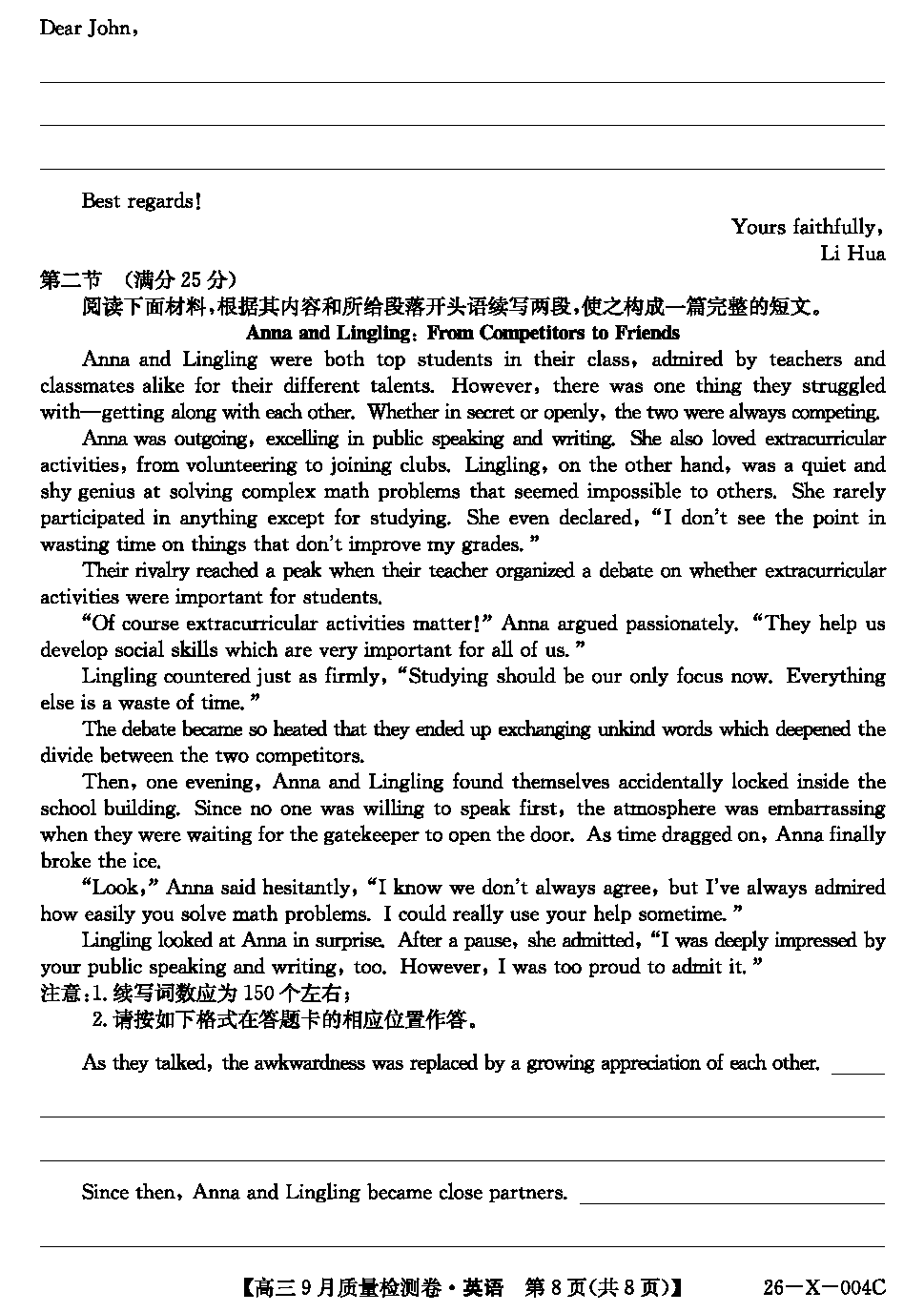 山西三晋卓越联盟2025-2026学年高三9月质检英语考试已于近日开考,为方便考生考后及时查看考试情况,查漏补缺、弥补不足,本文整理了试题答案解析相关信息!