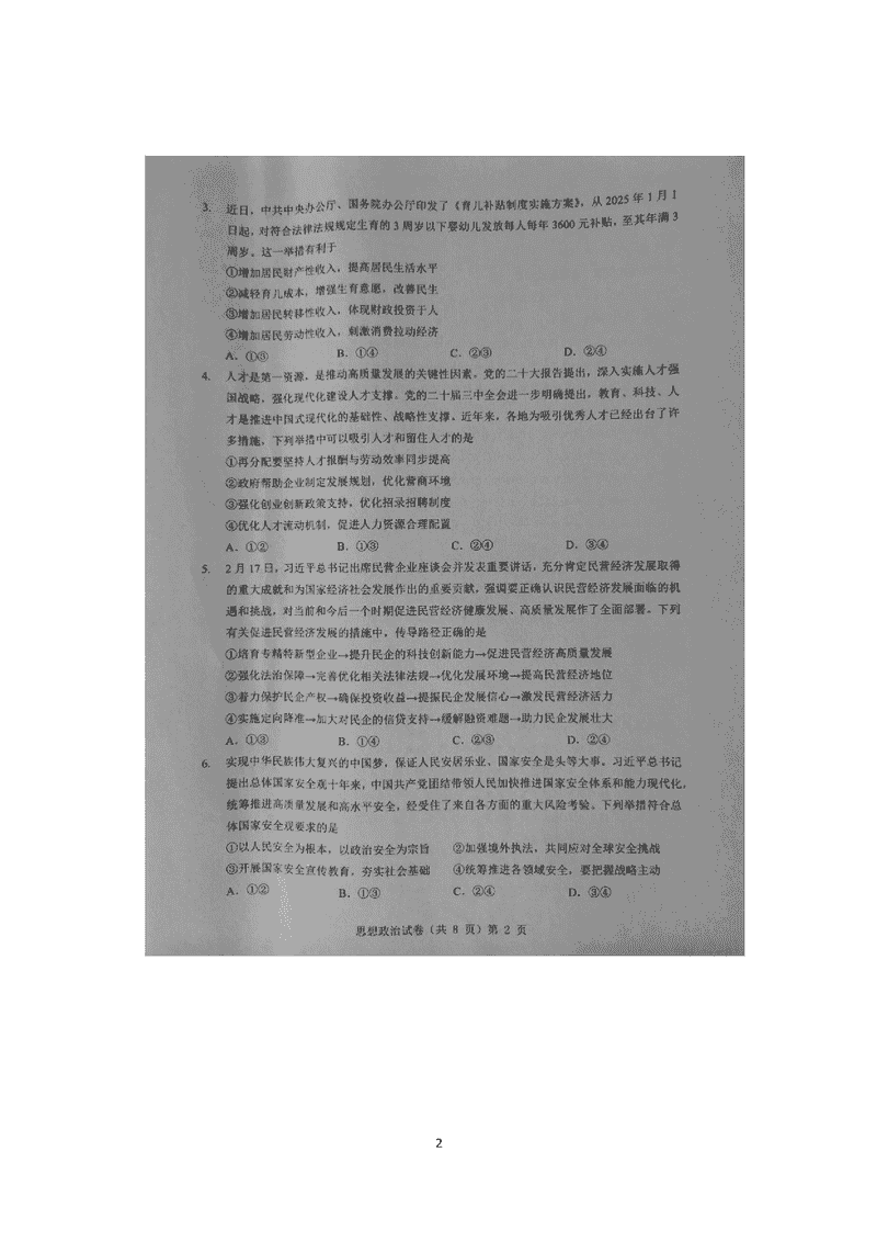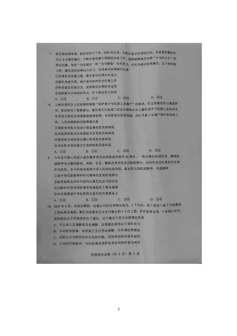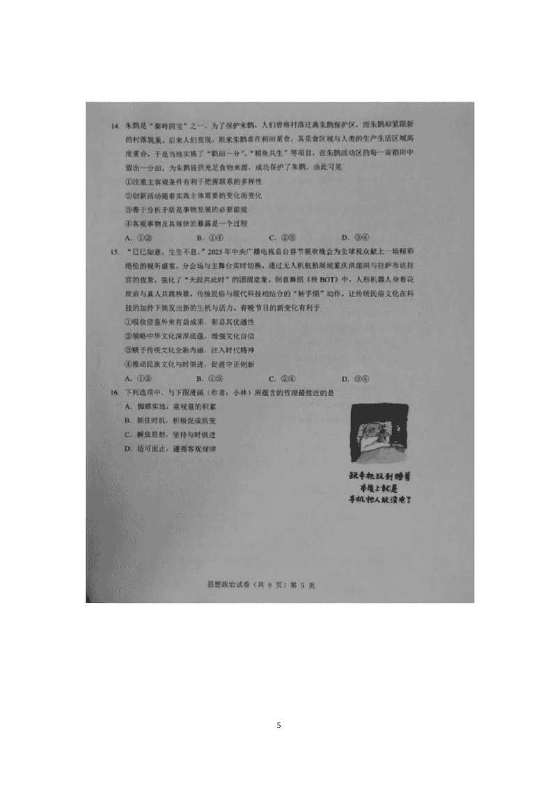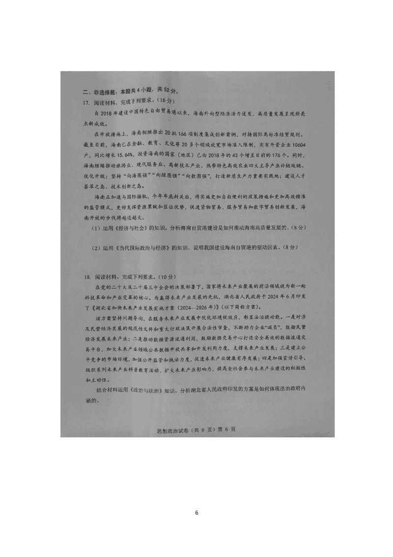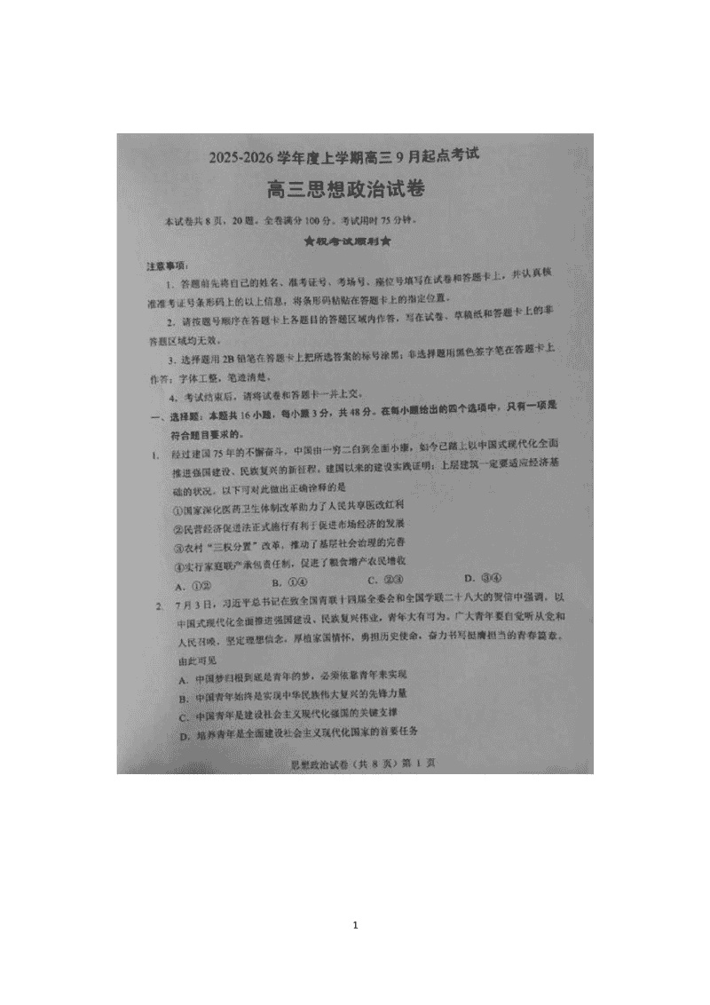 湖北楚天协作体2025-2026学年高三上9月起点政治试题及答案